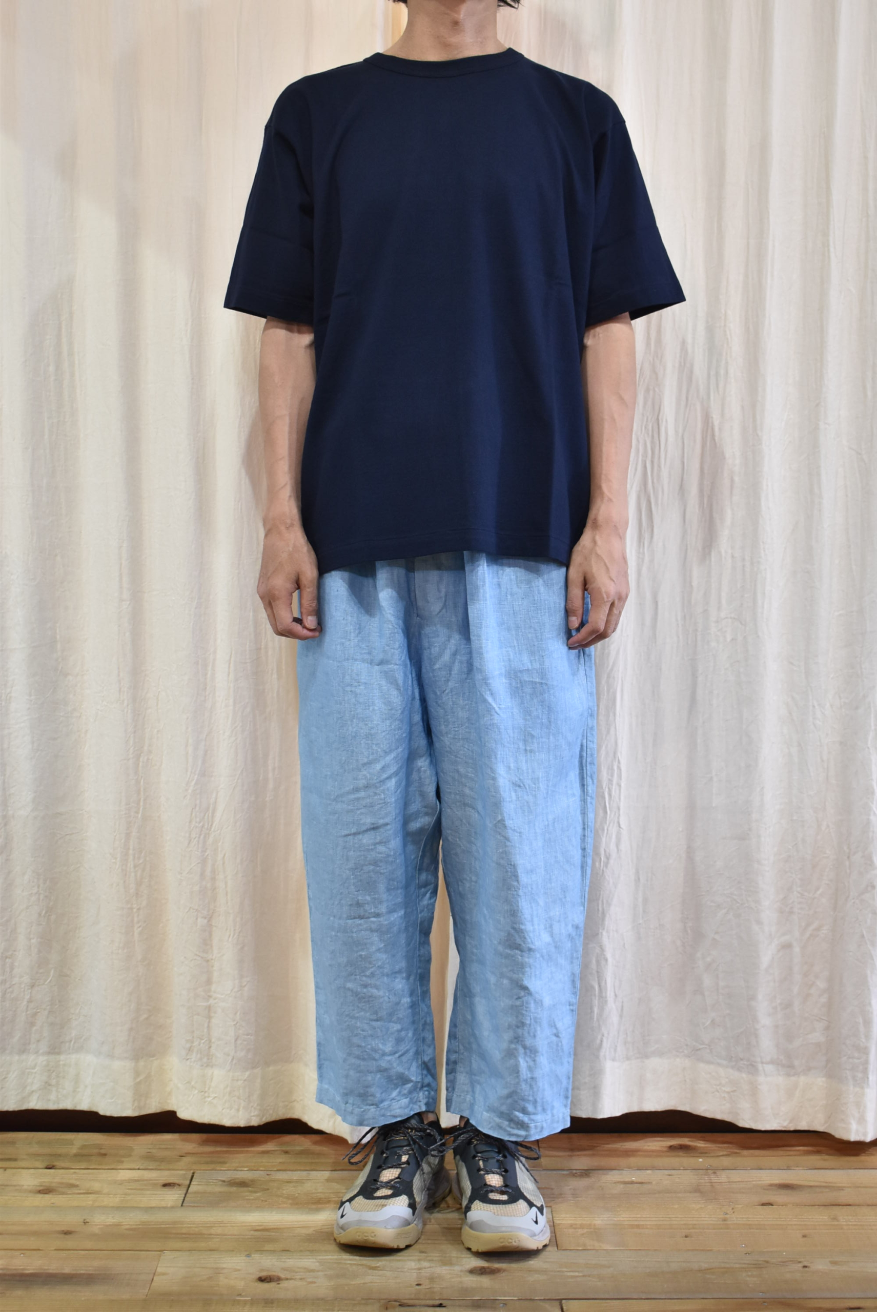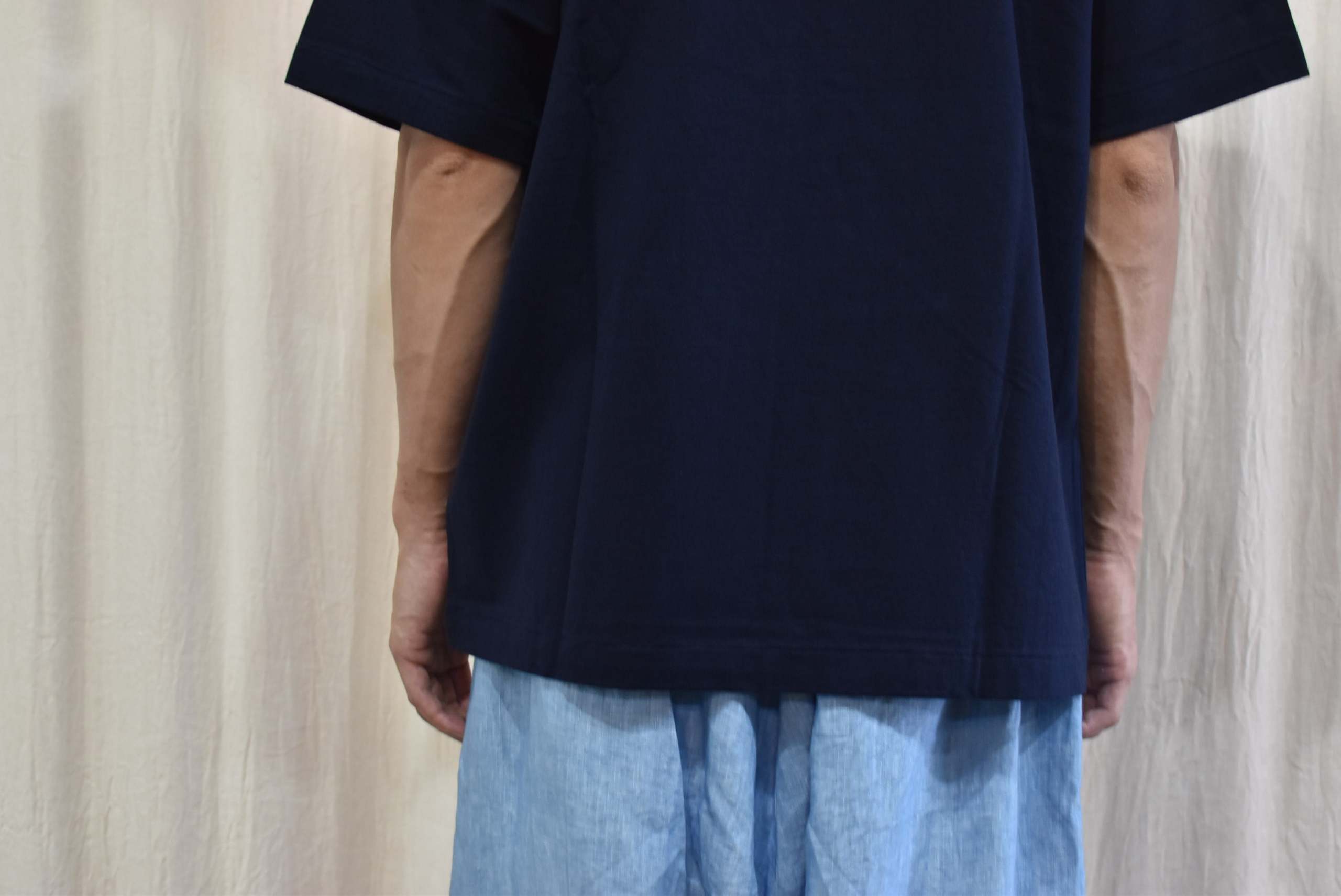 ウェイトがある生地なので、丁度今日のような30℃に届くか届かないかの気候に良さそうな厚み。