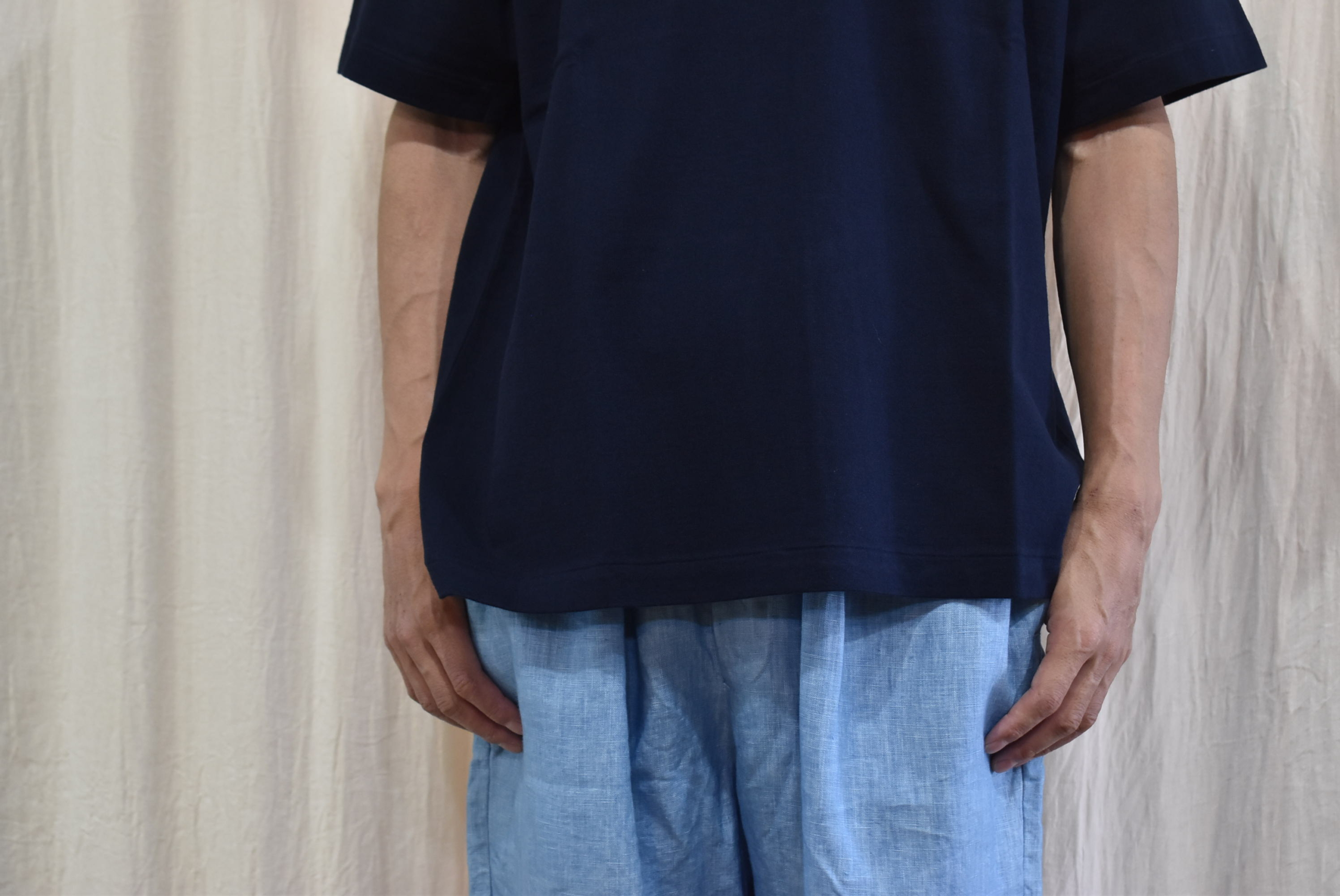 自分自身が辿り着いた夏の装いは、今日は暑いぞと思う日は布帛(シャツ生地)を着て、気温が落ち着いている日は