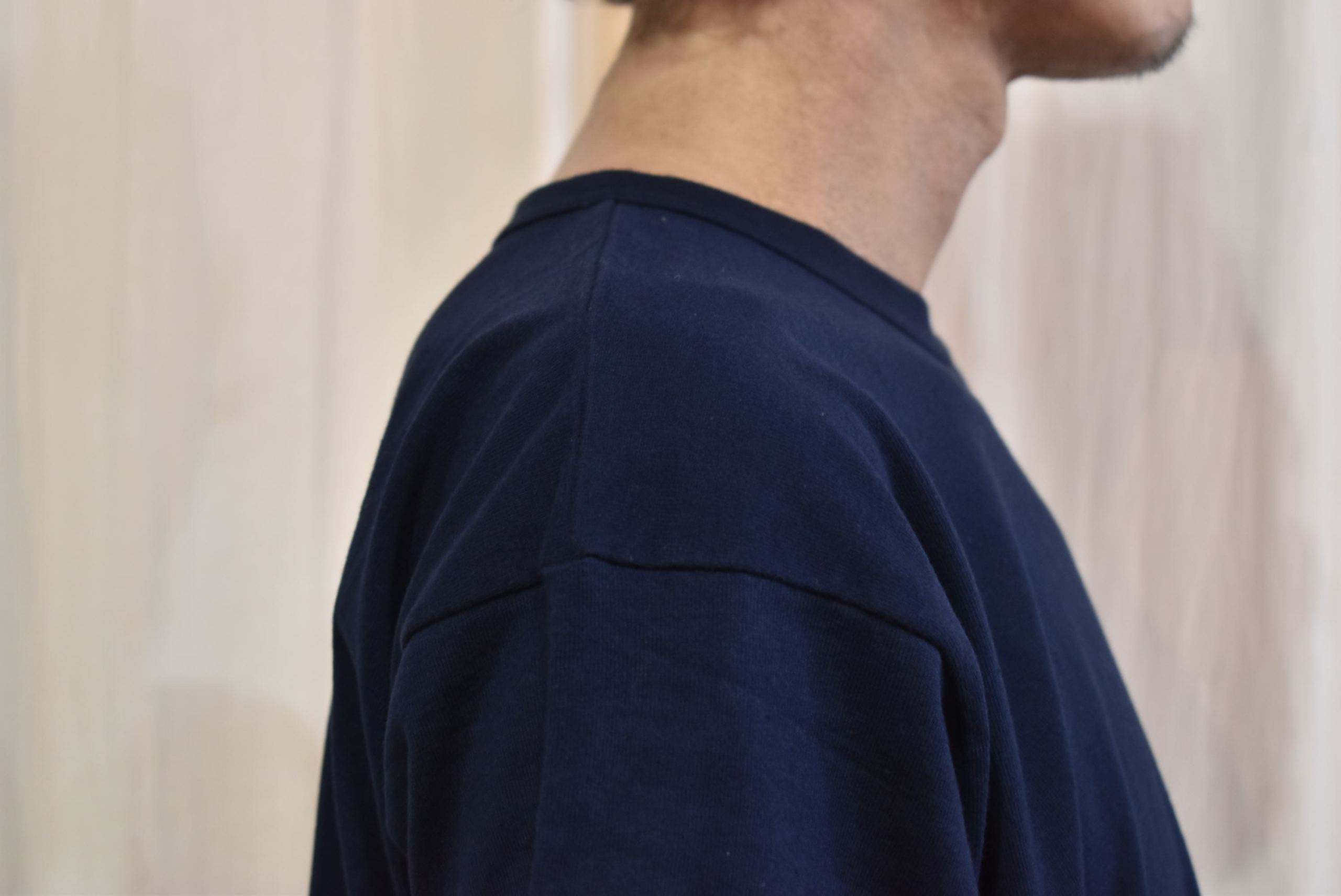 肩線は直線的につけているので、肩がしっかりと落ちるドロップショルダー。