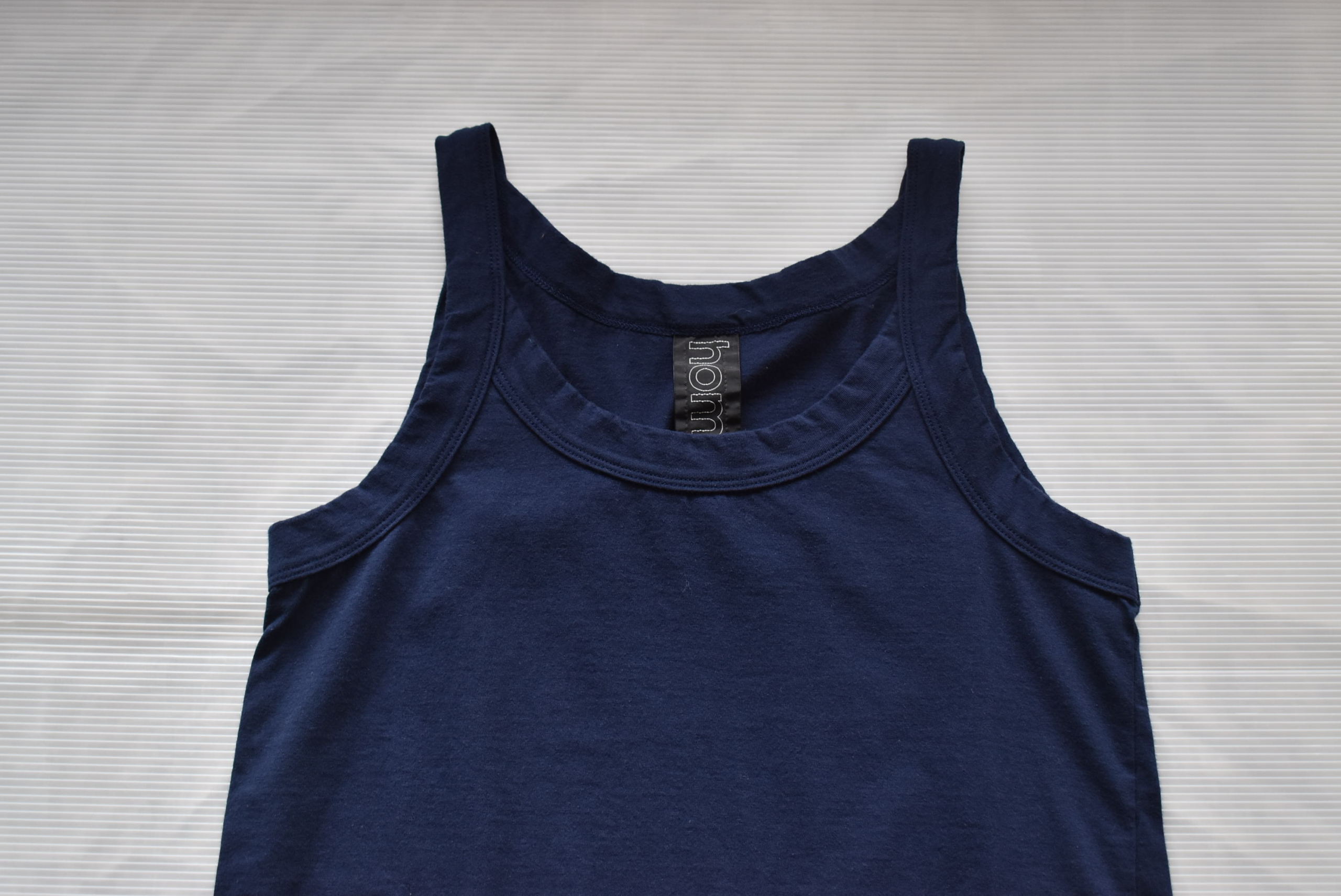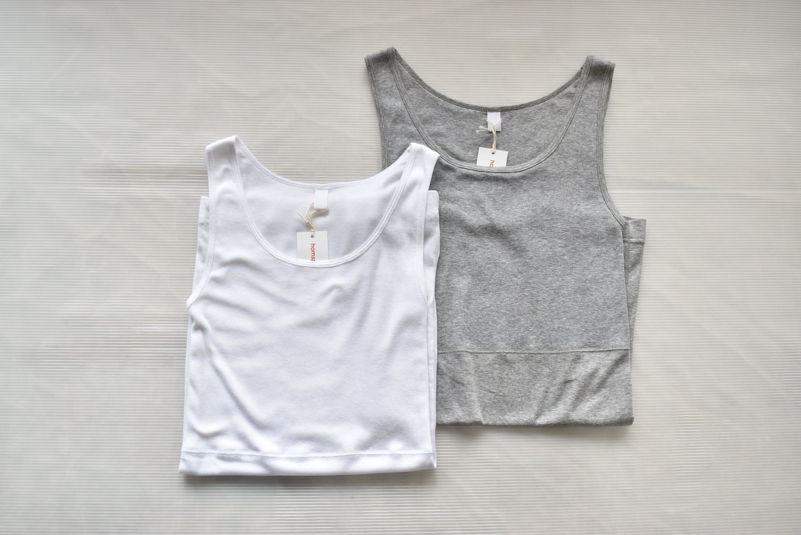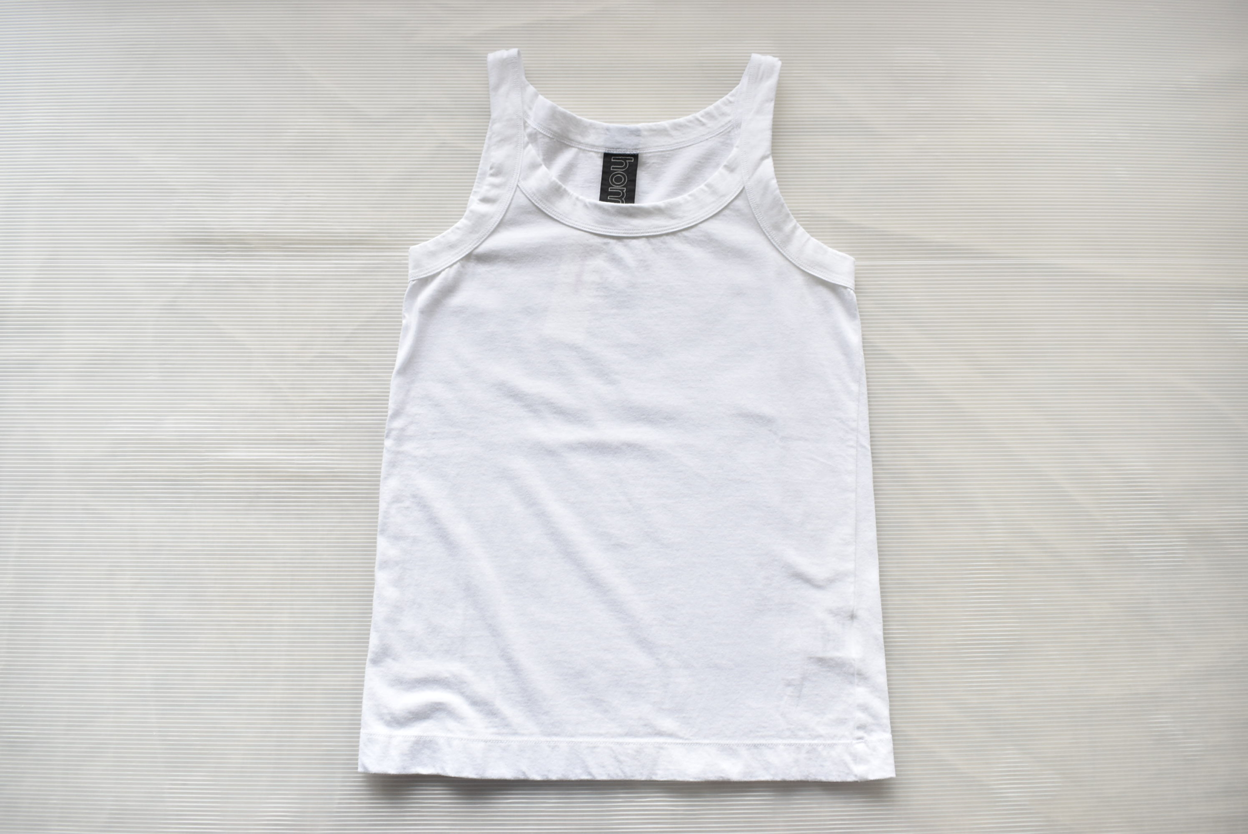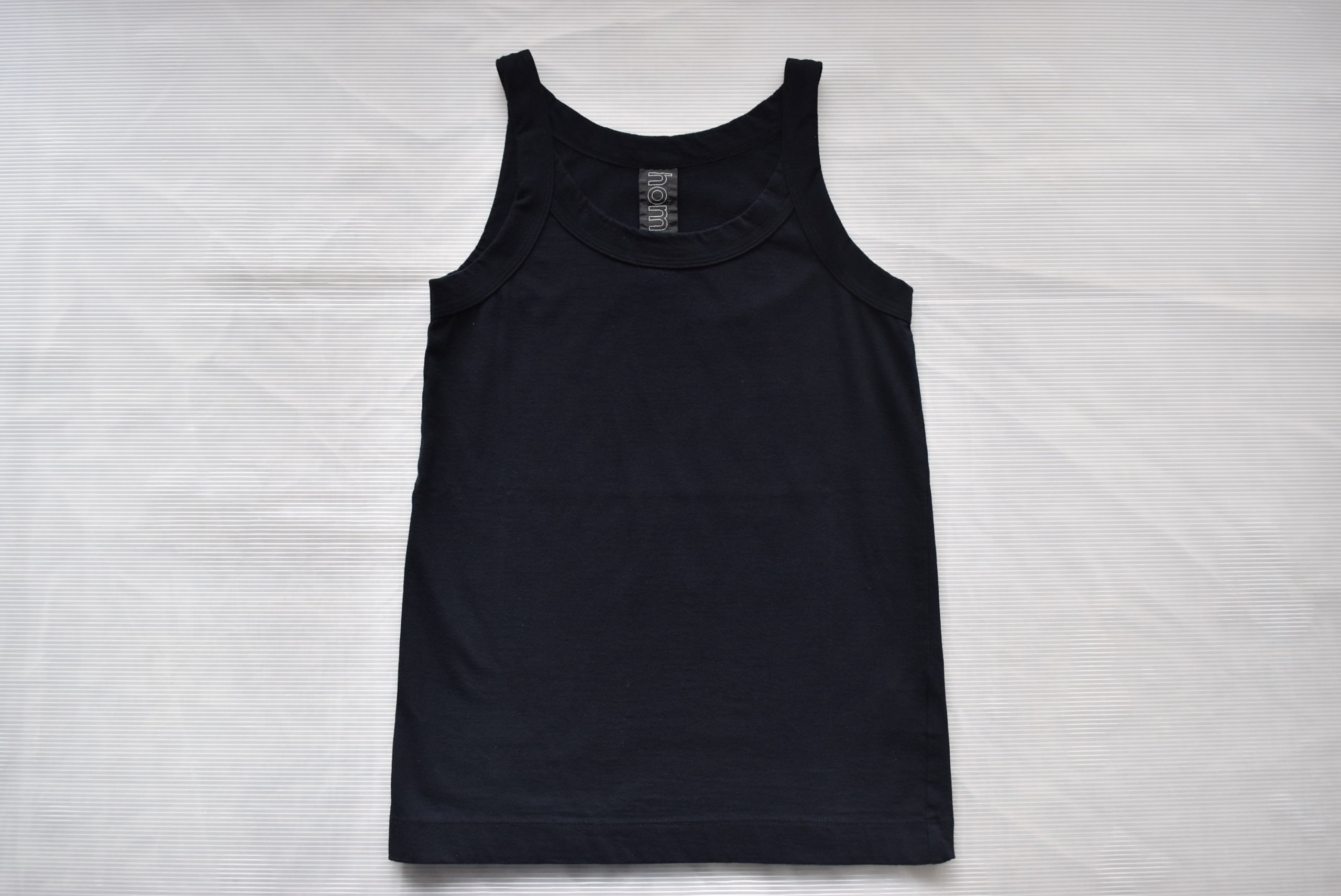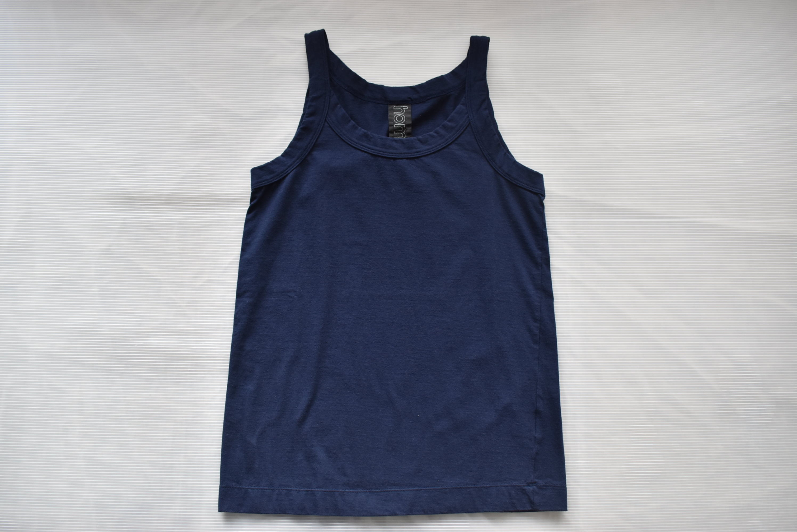 30/1天竺を用いたキャミソール型。homspunと言えば、、、の定番Tシャツの生地を使ったキャミソール。