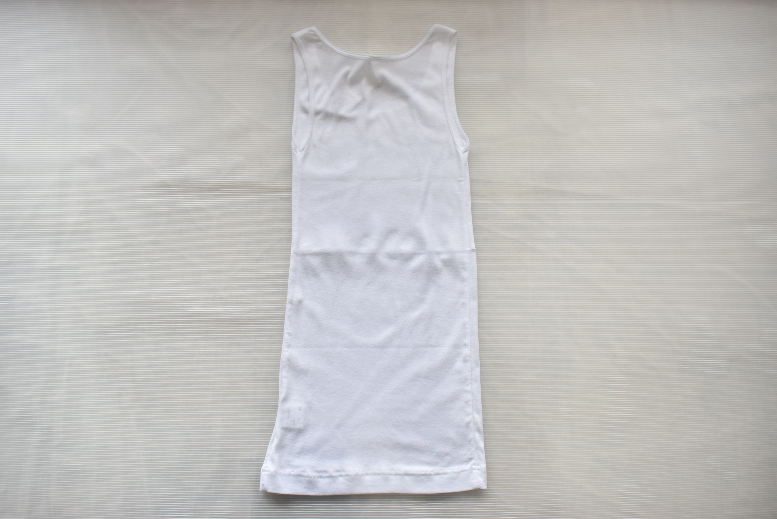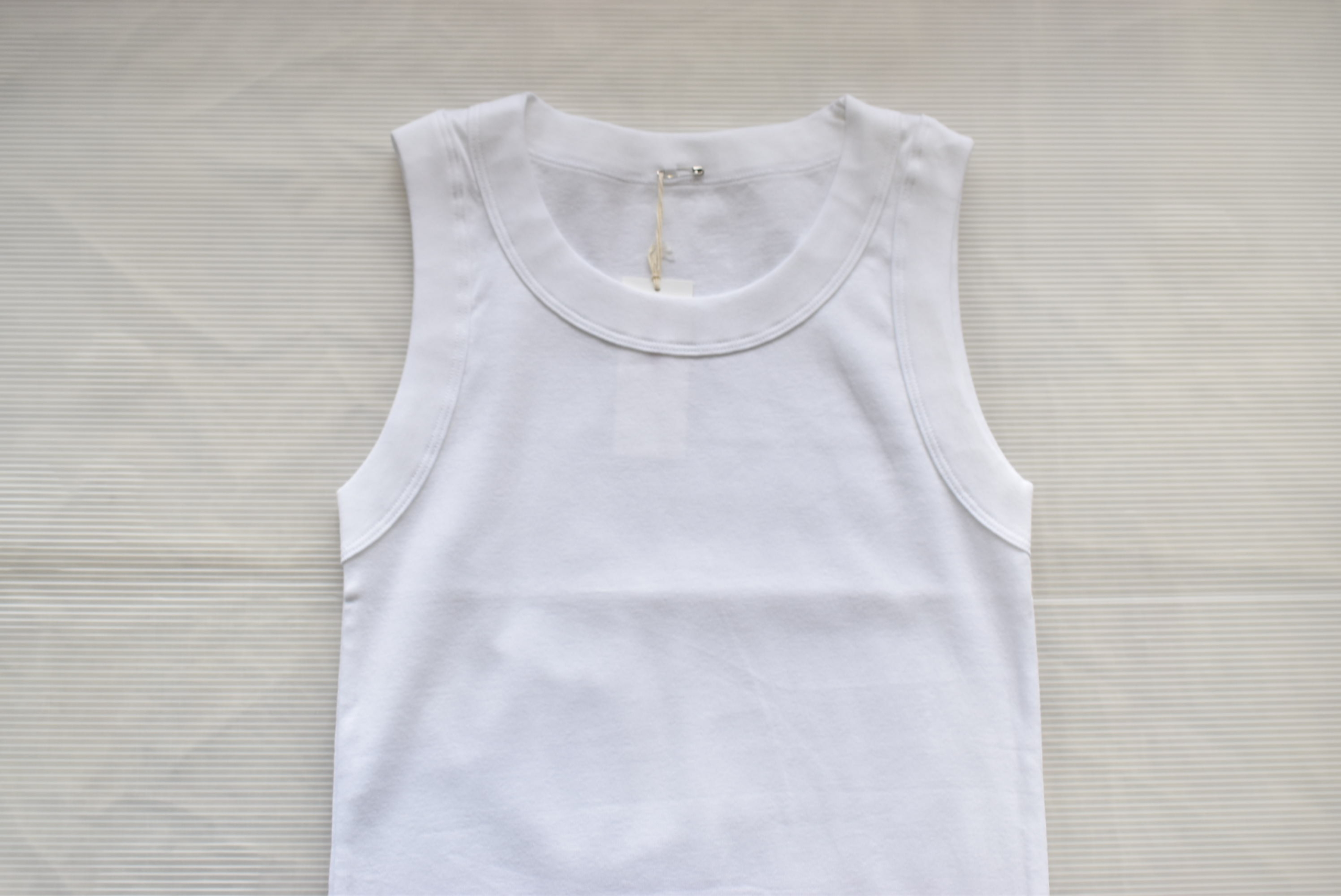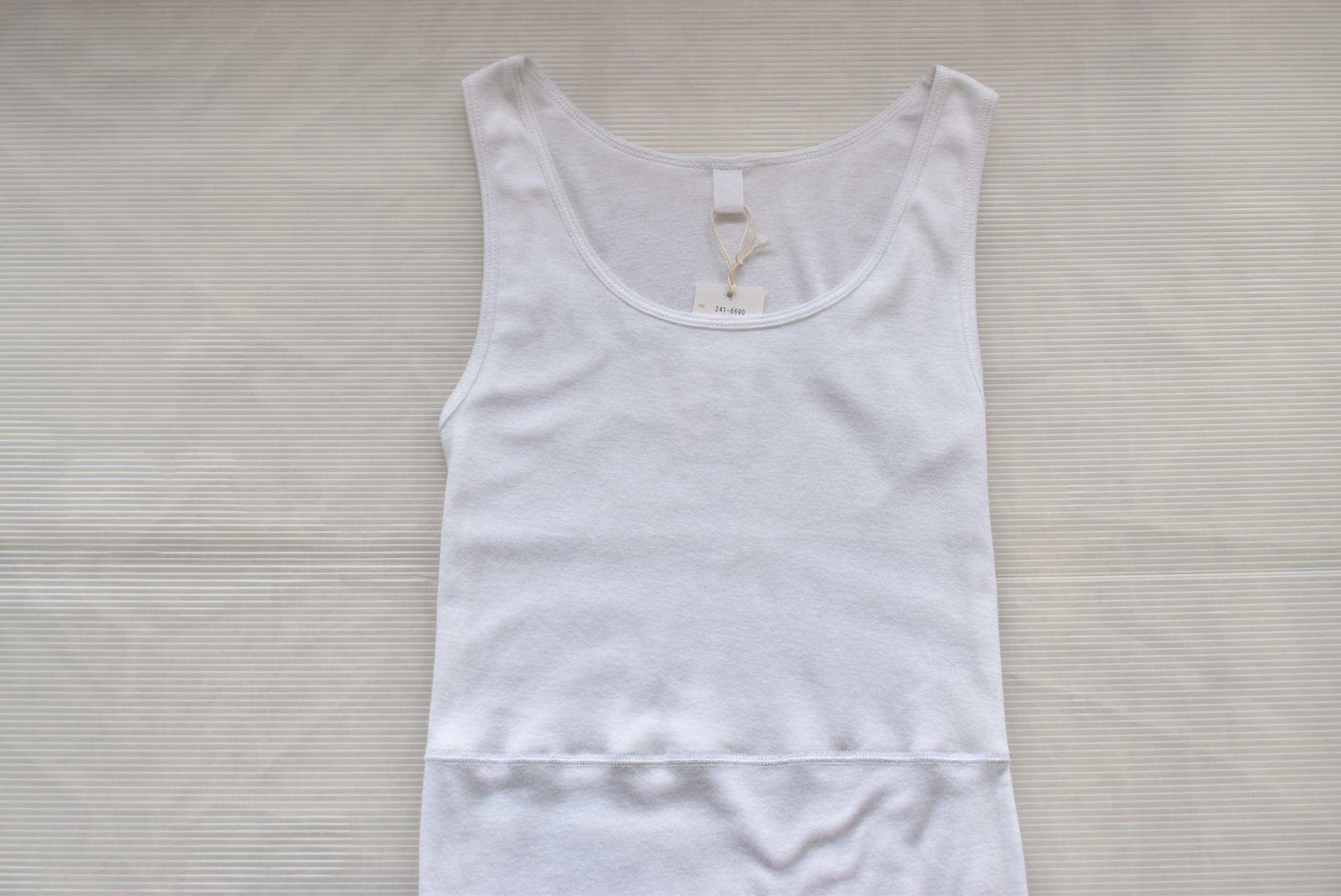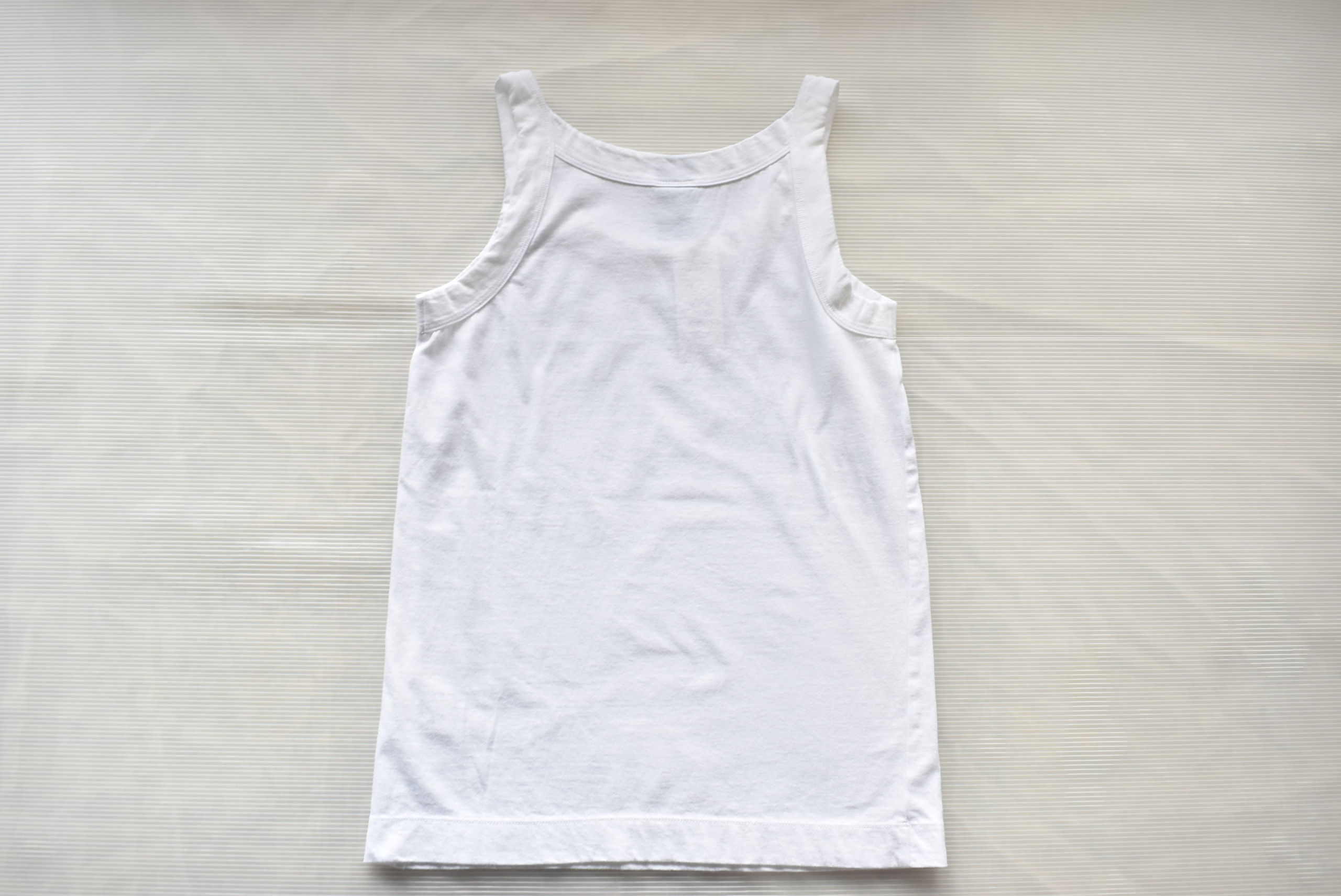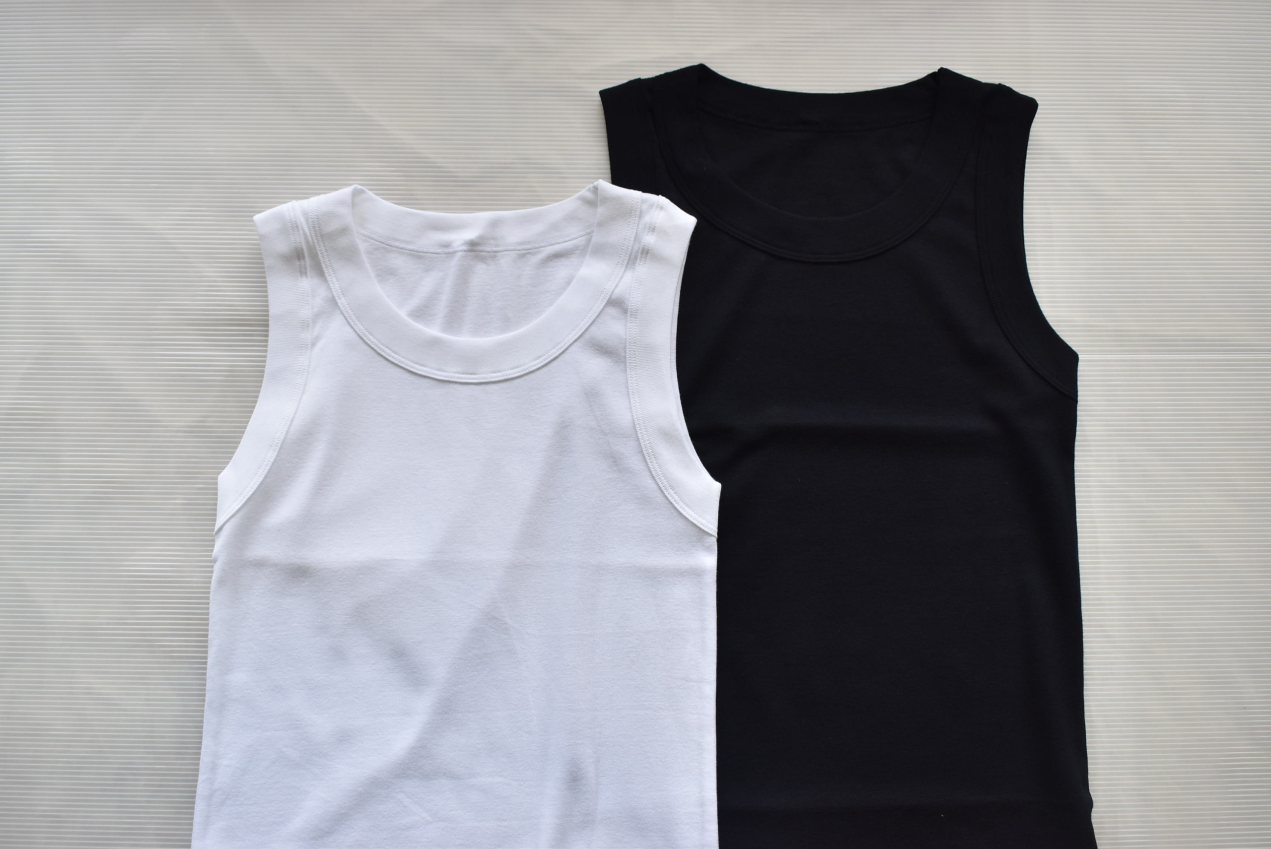 布帛を合わせた際に、タンクトップのラインが表にひびき過ぎずに着用出来る点がメリットです。