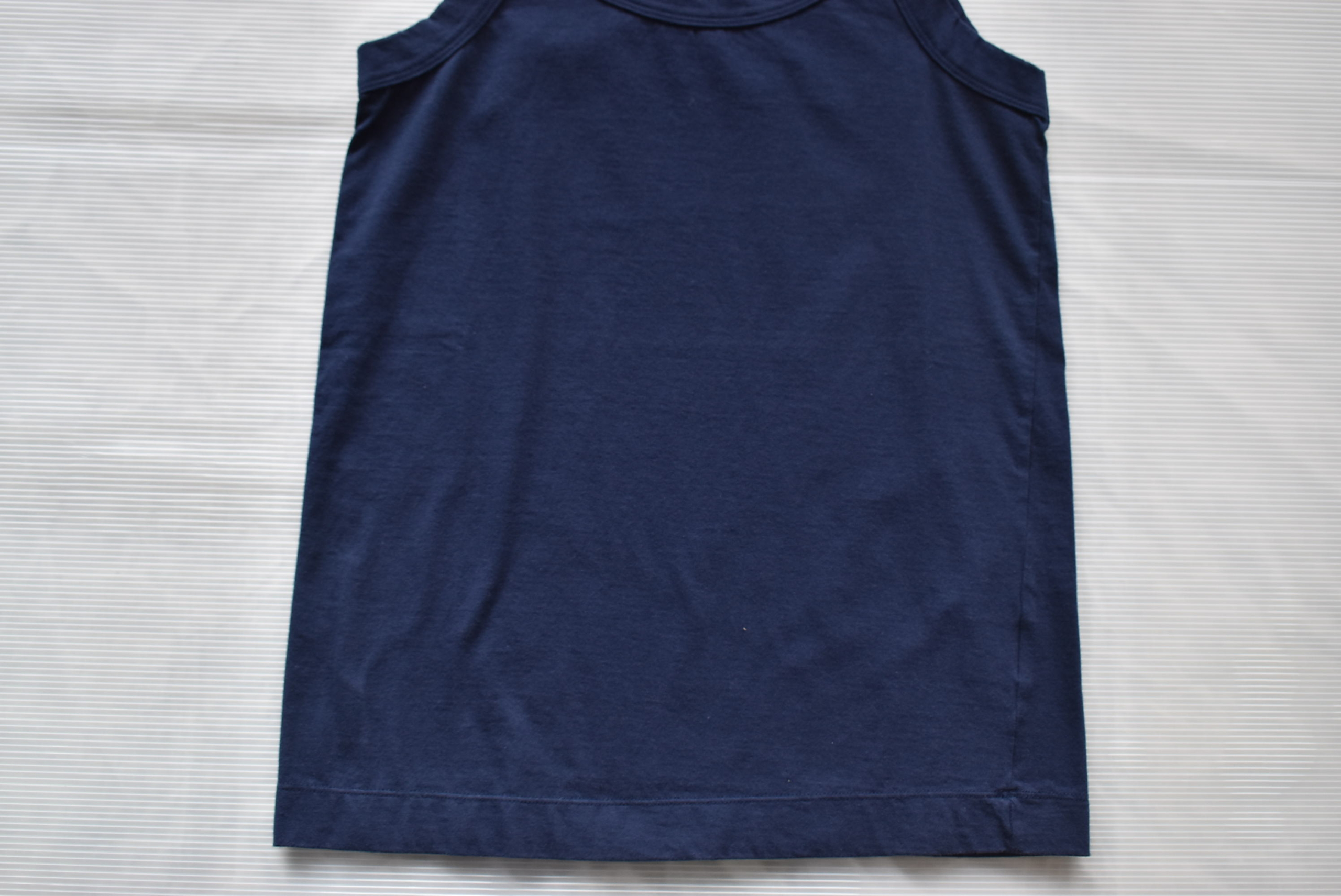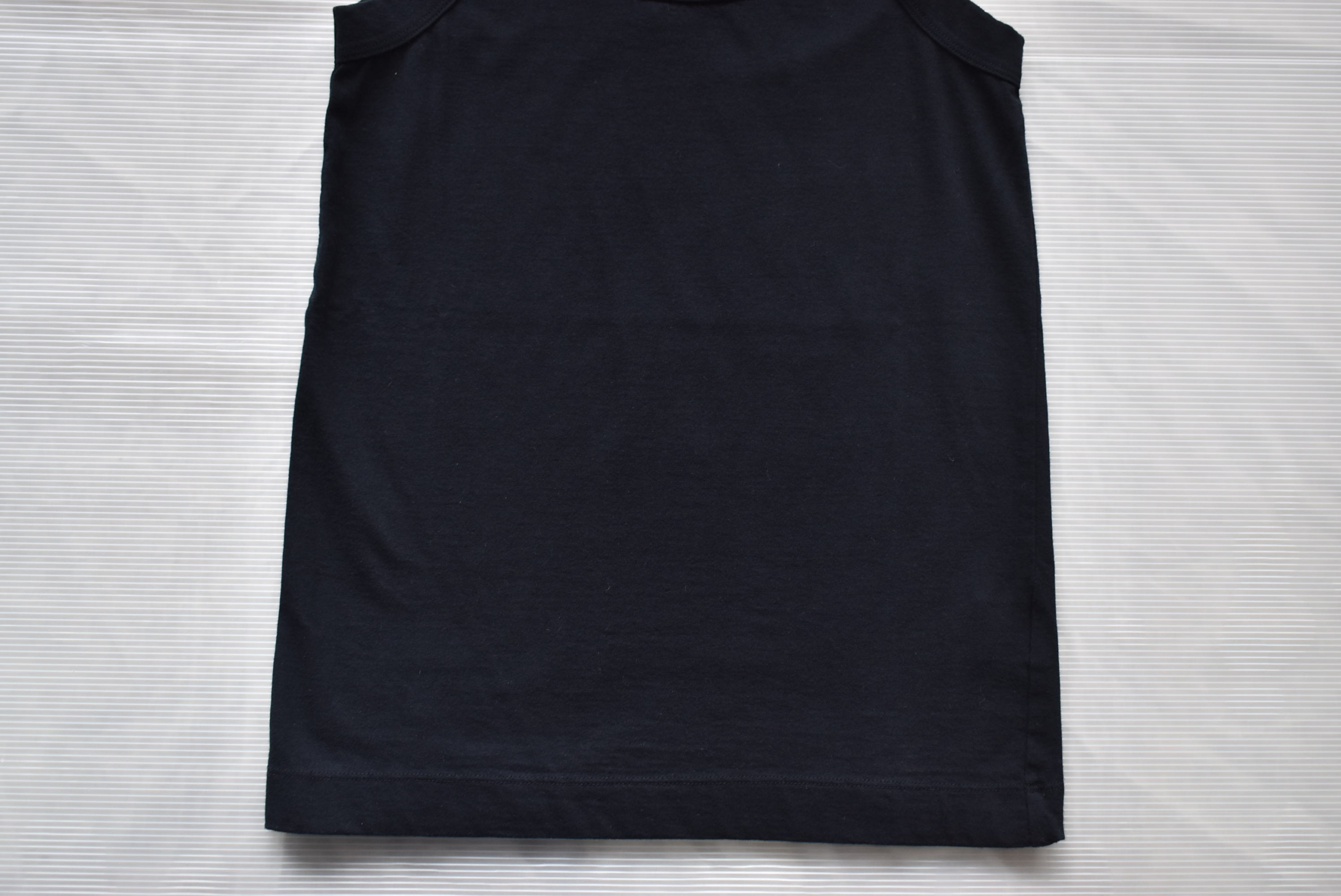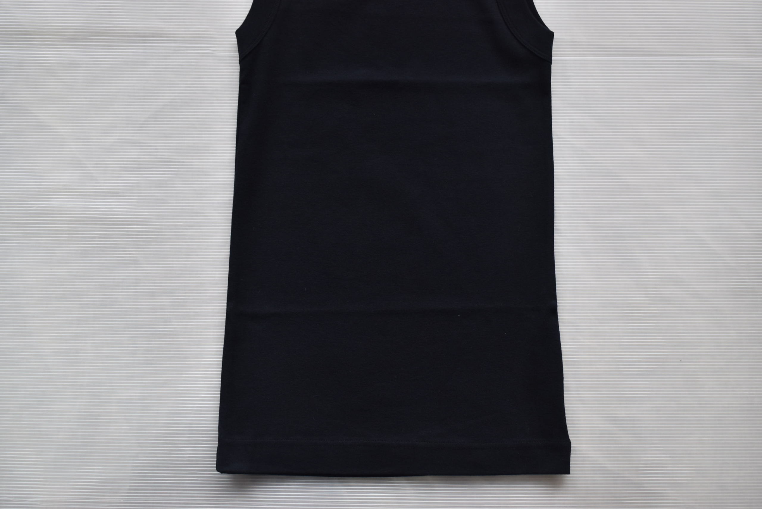 こちらは40/1フライスを用いたノースリーブ。フライスの編地なので伸縮性があって、ややタイトなシルエット。