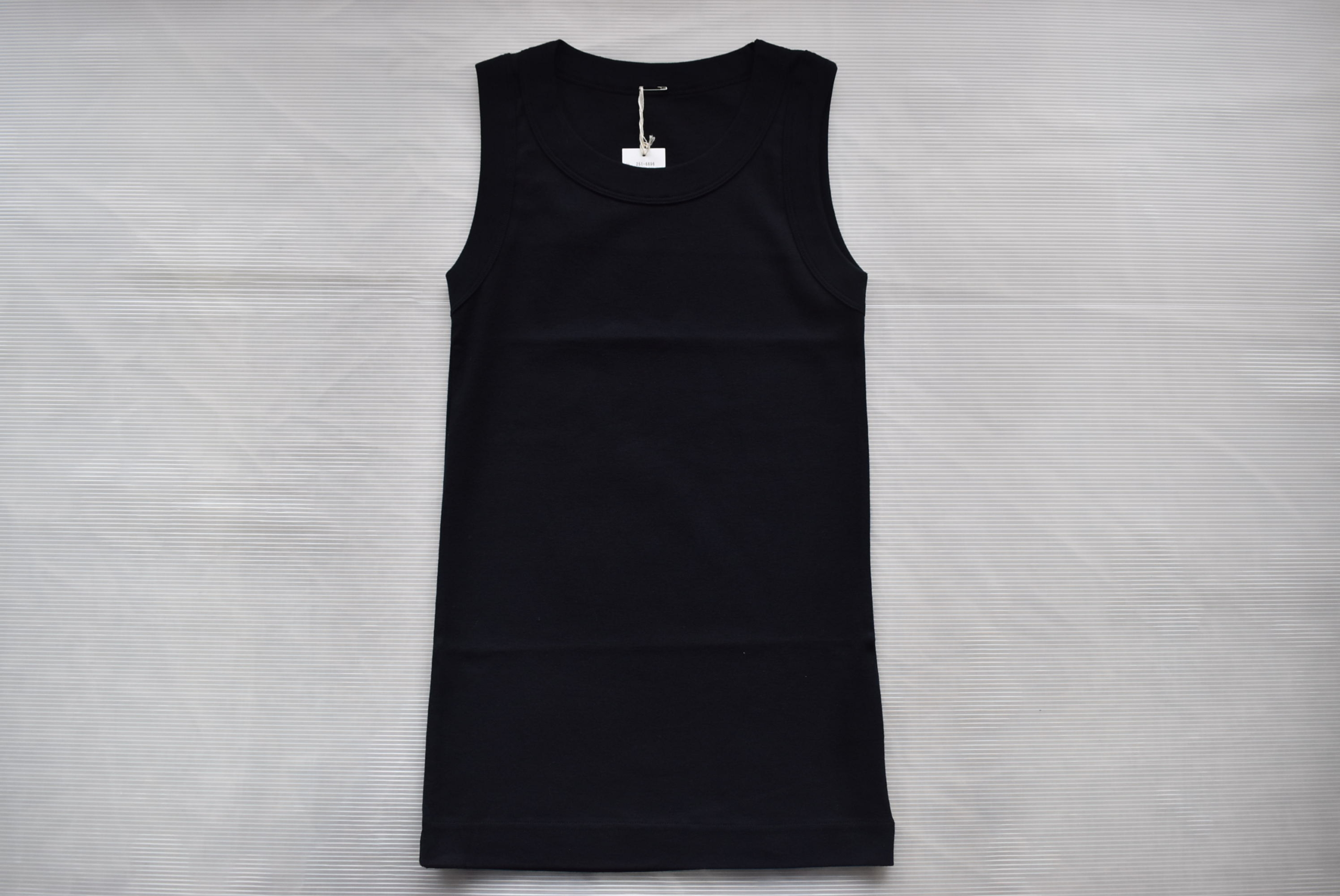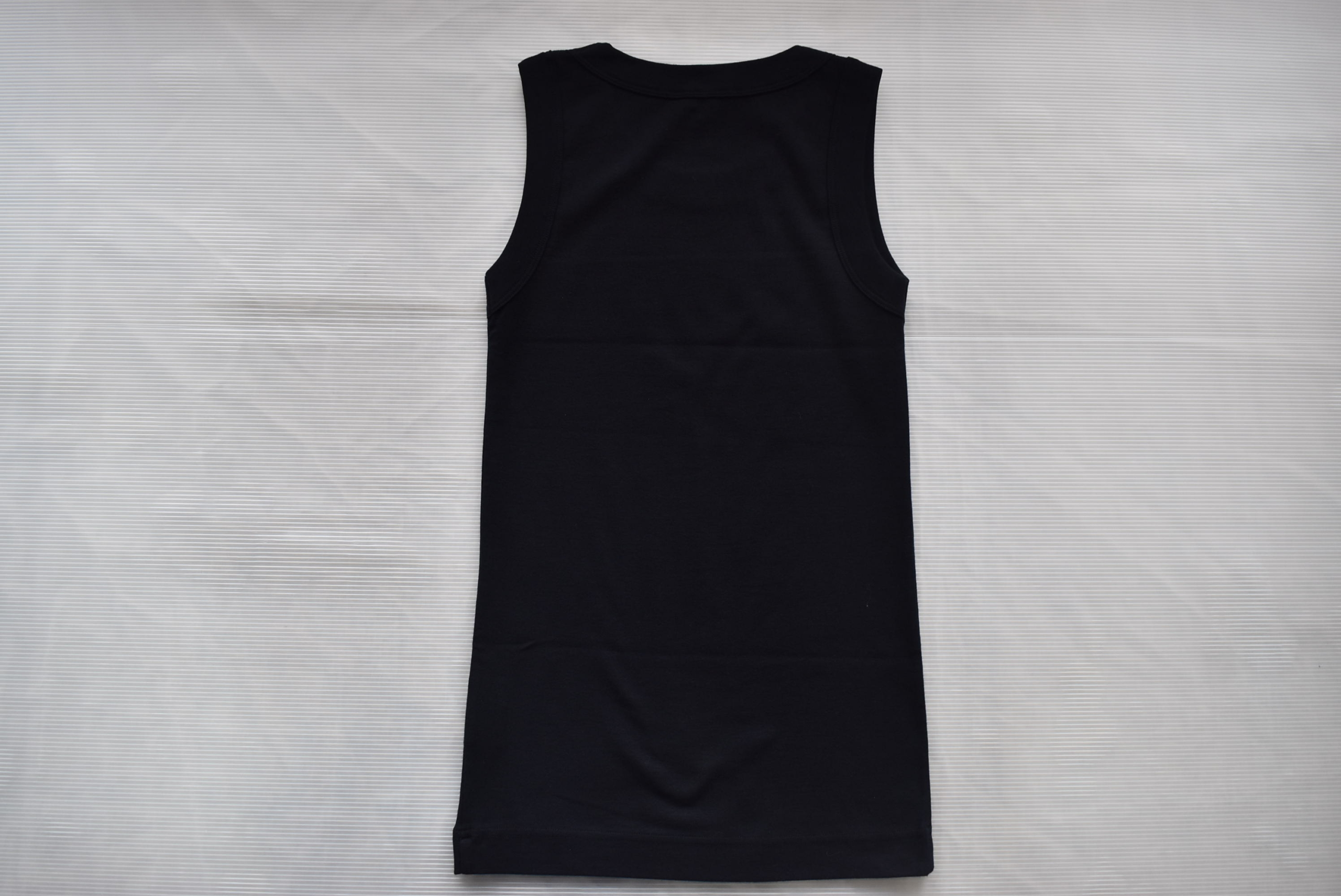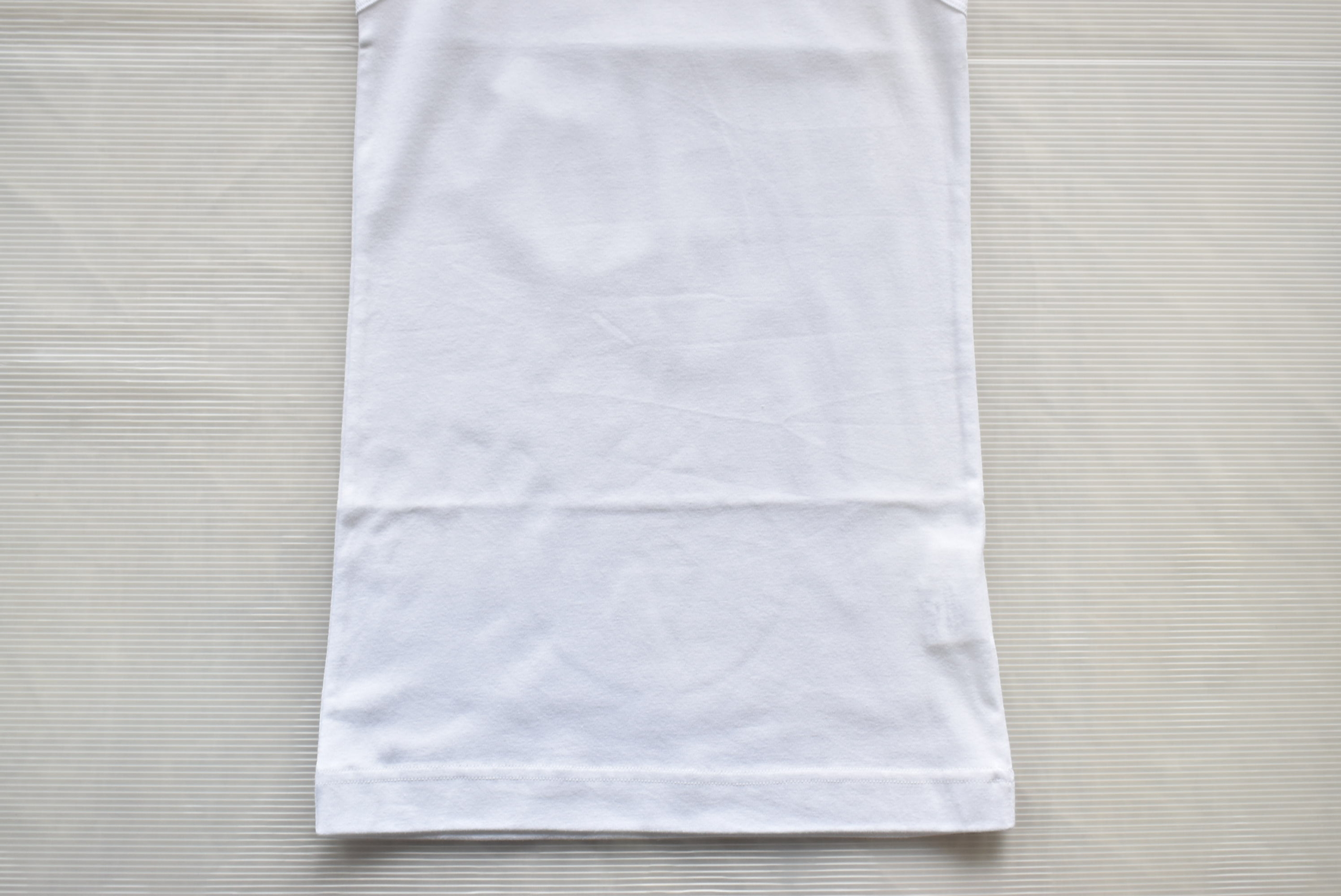 こちらは40/1フライスを用いたノースリーブ。フライスの編地なので伸縮性があって、ややタイトなシルエット。