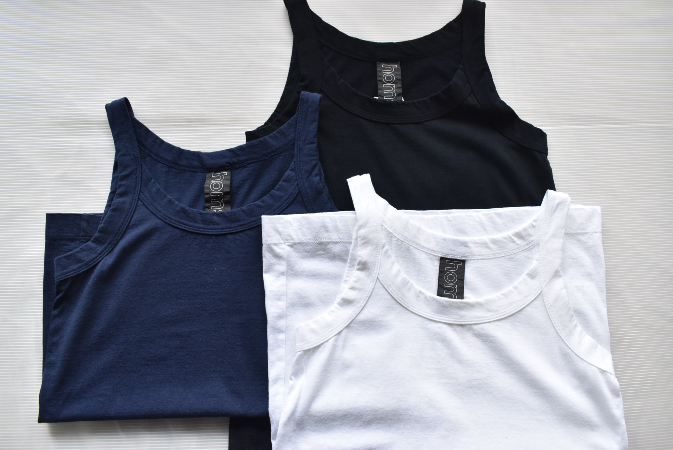 homspunのインナーシリーズです。インナー、とても大切。肌に直接触れるものだけに、出来る限り心地良いモノ、