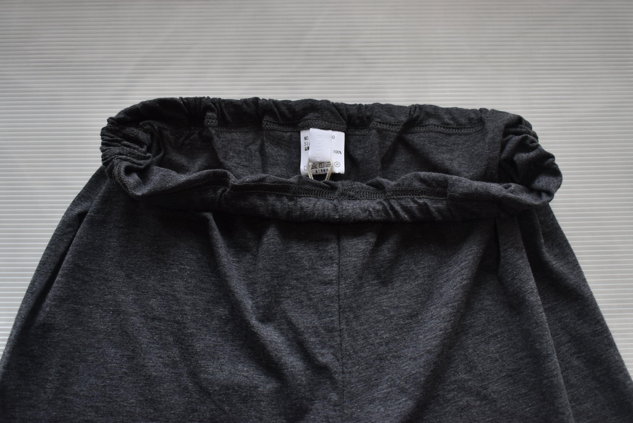 もう1つが裾が同素材できゅっと細く切り替えしにしているロング丈バージョン。