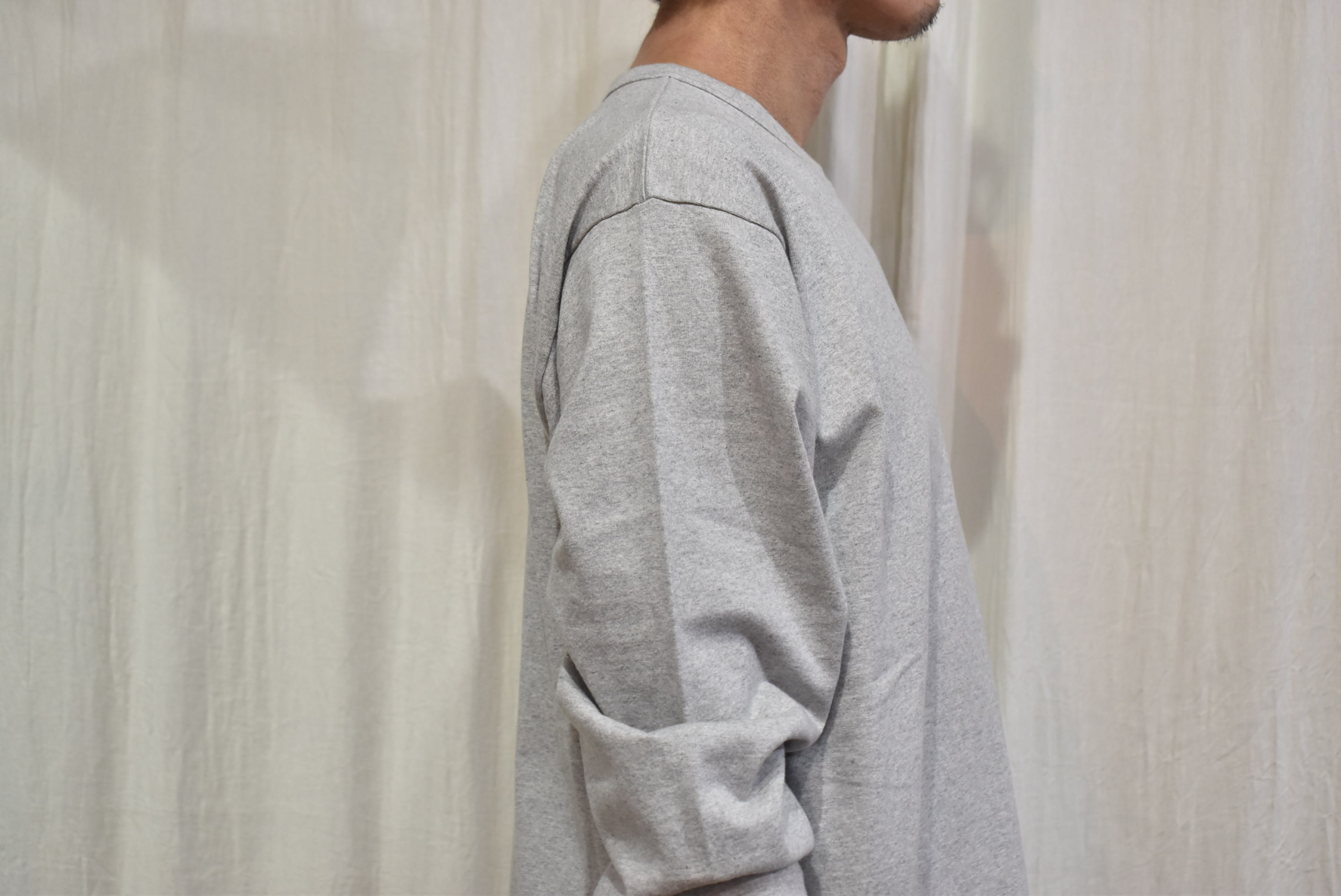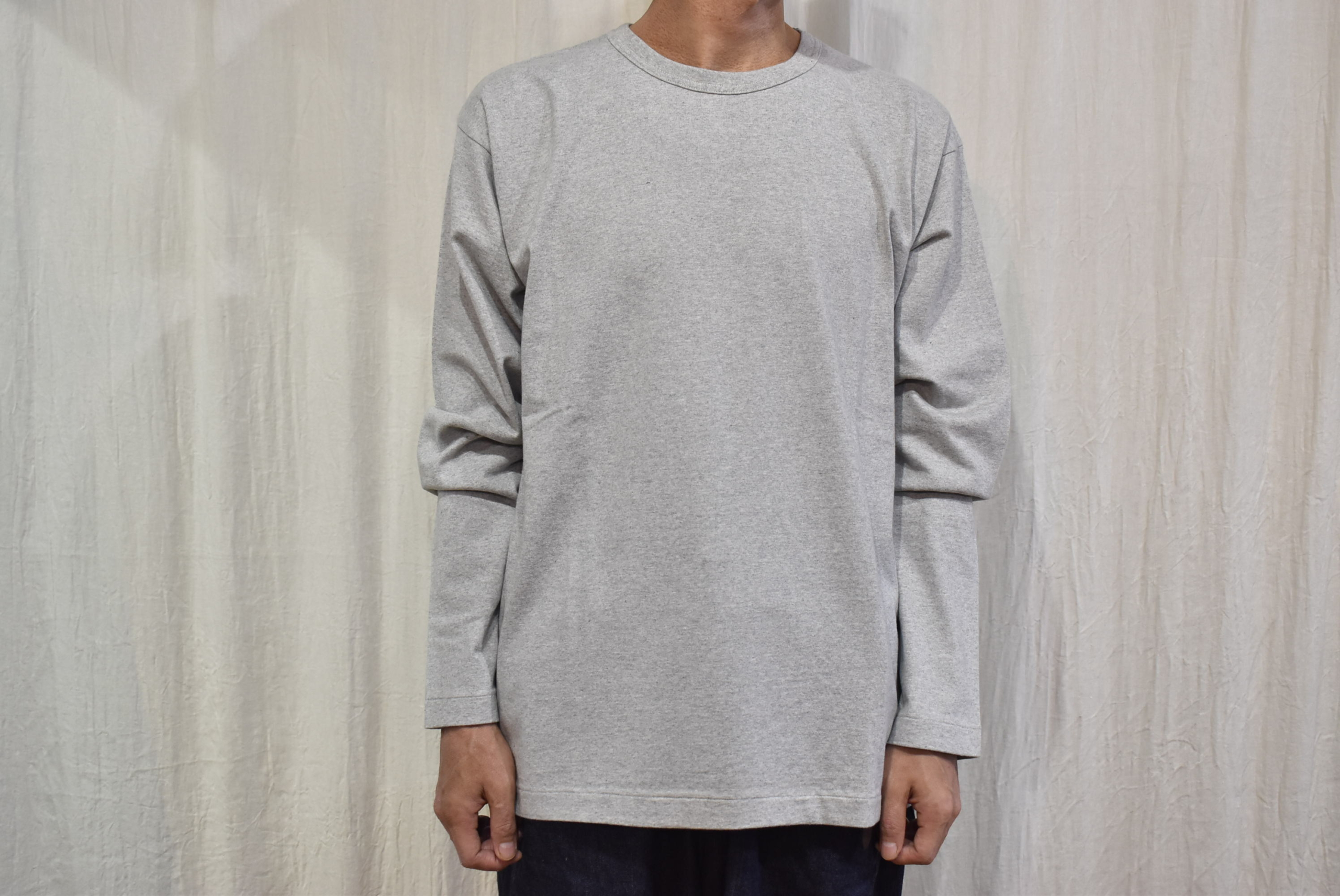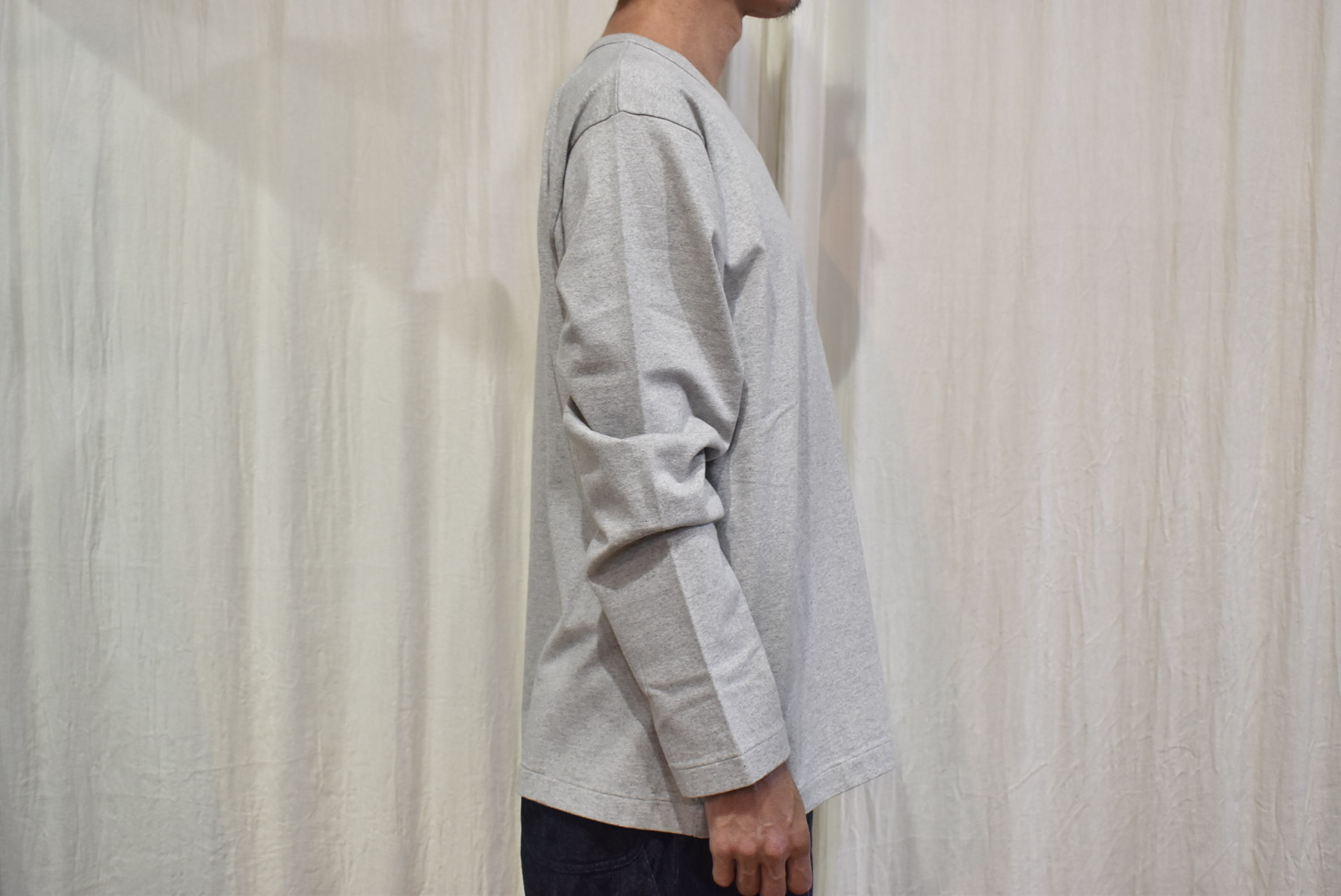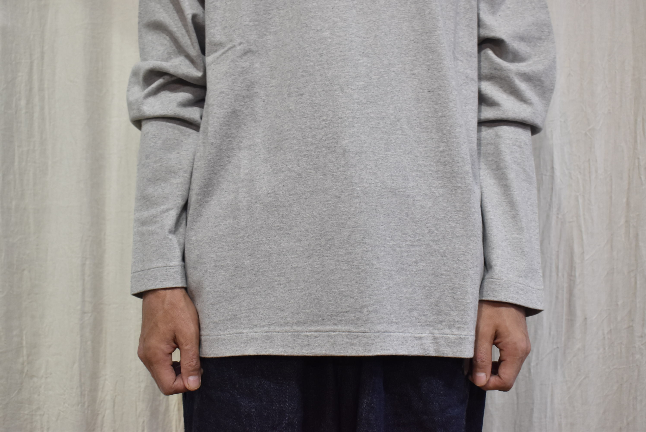 久し振りに杢調の色目をセレクトしましたが、1枚着としては勿論ですが重ね着をするときにグレーのカットソーは