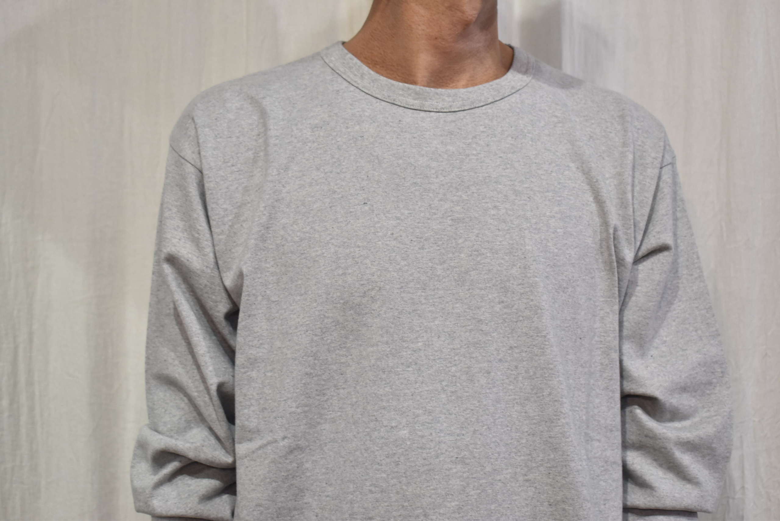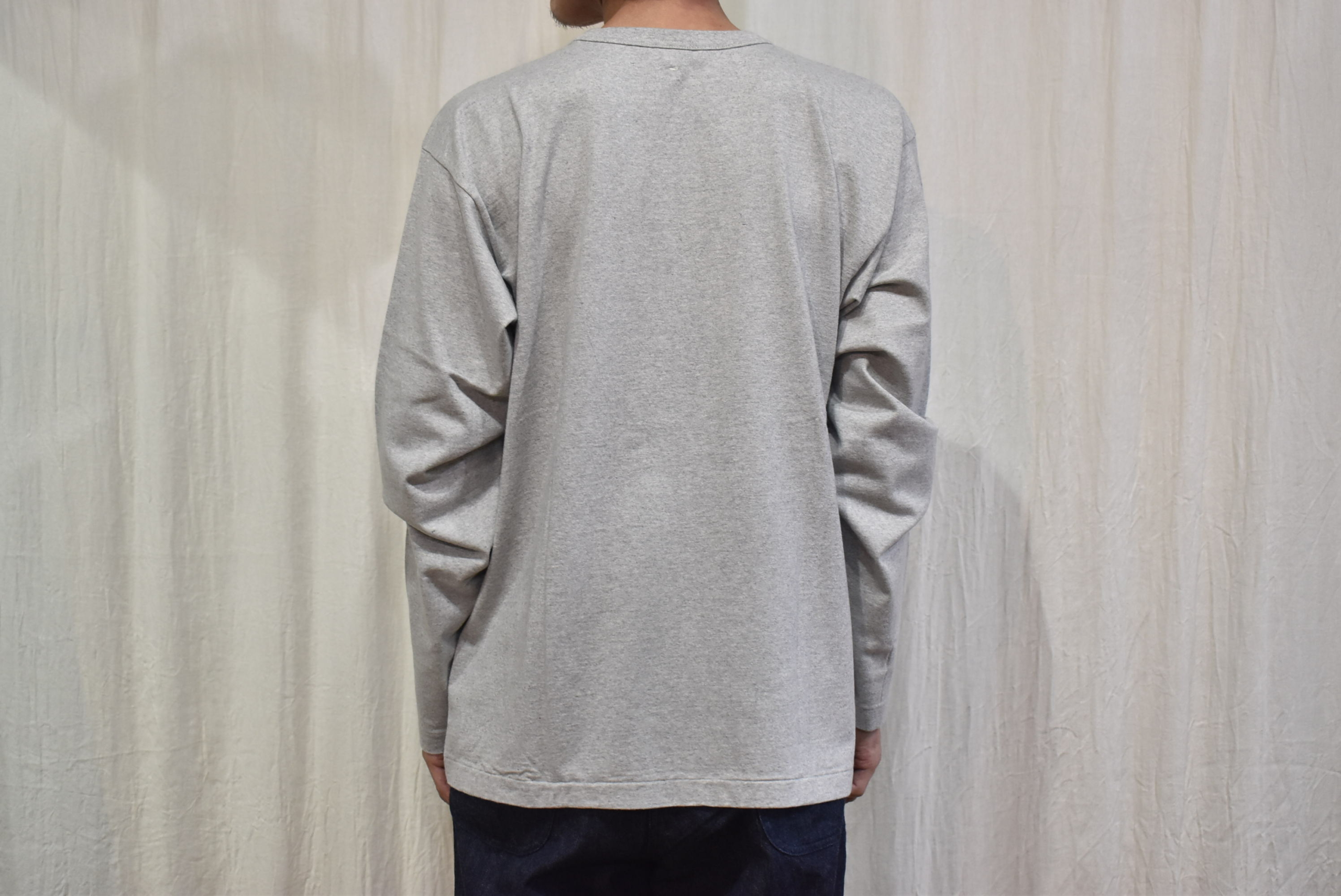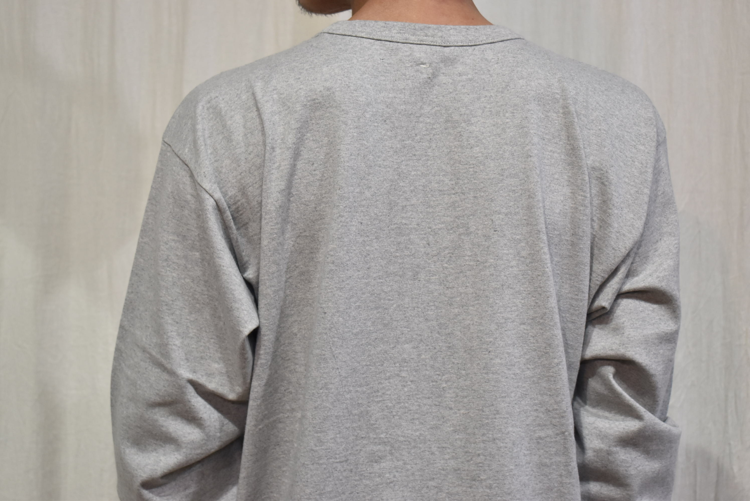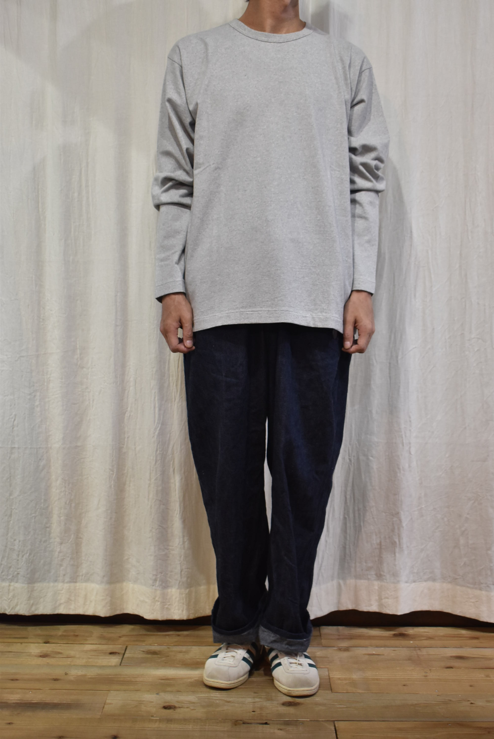 久し振りに杢調の色目をセレクトしましたが、1枚着としては勿論ですが重ね着をするときにグレーのカットソーは