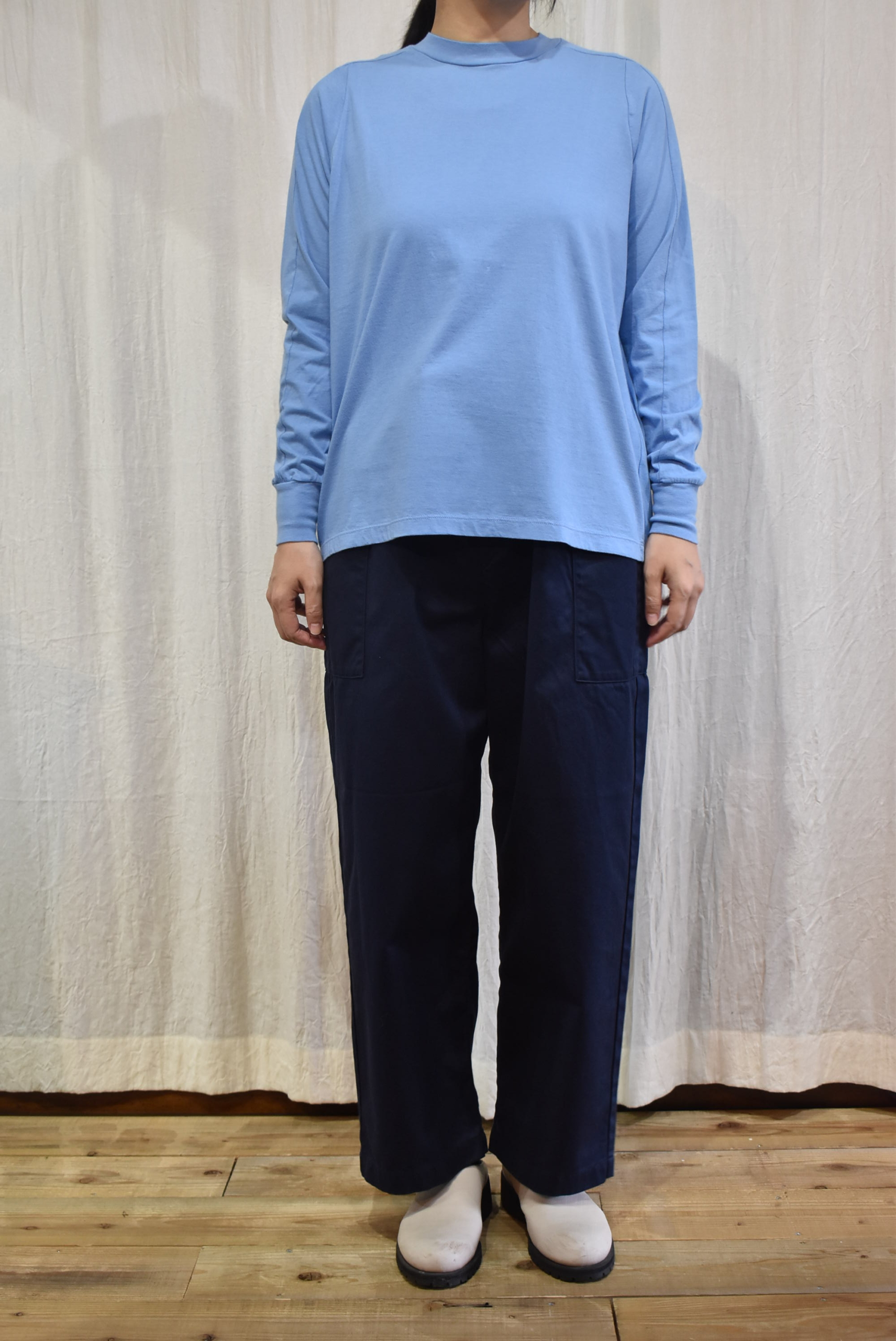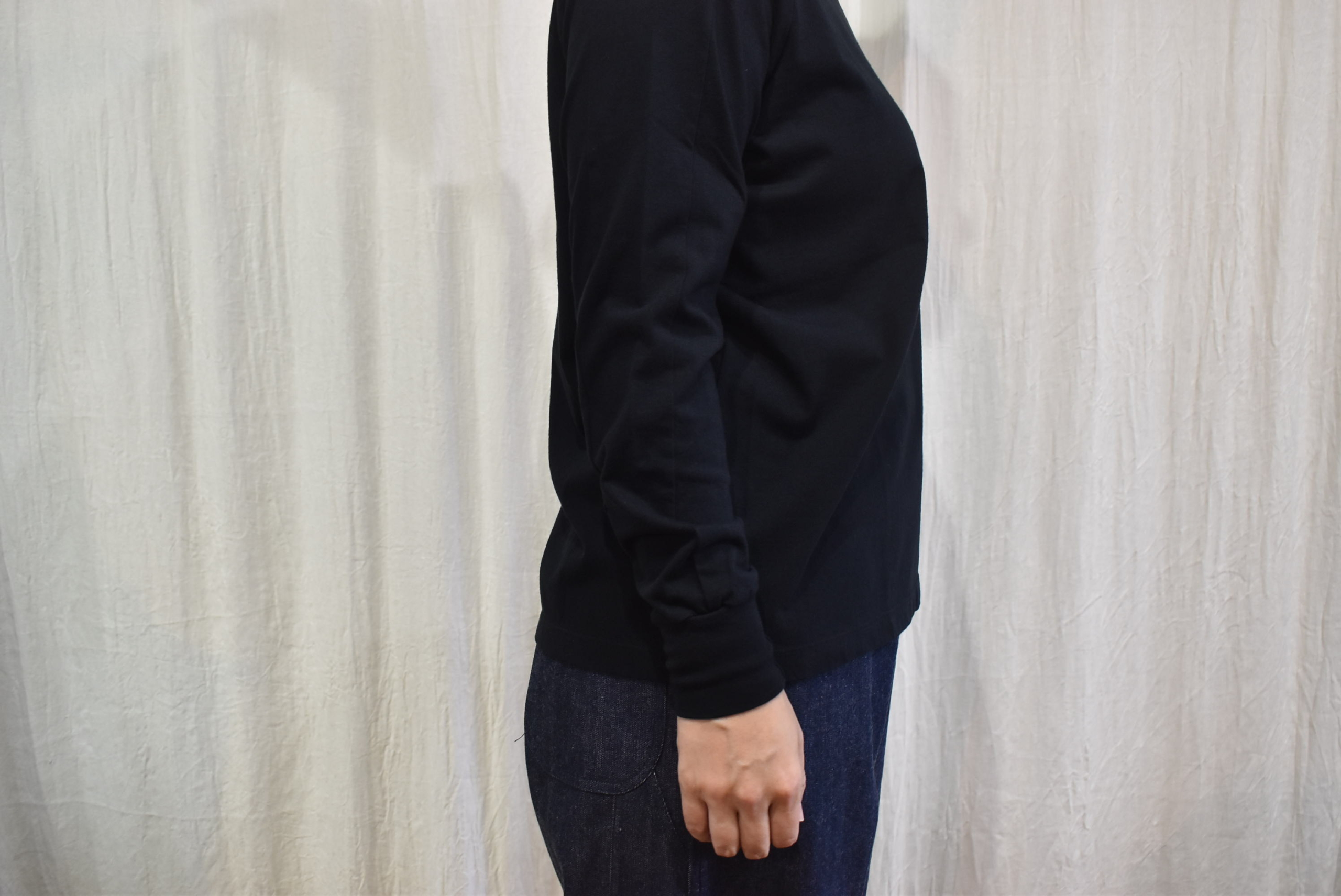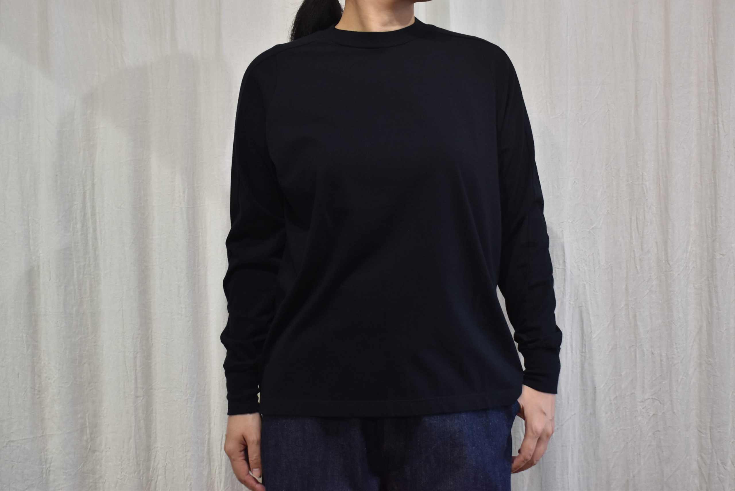 ということで、同じ生地を用いたクルーネックタイプも届いていますのでご紹介いたしますね。