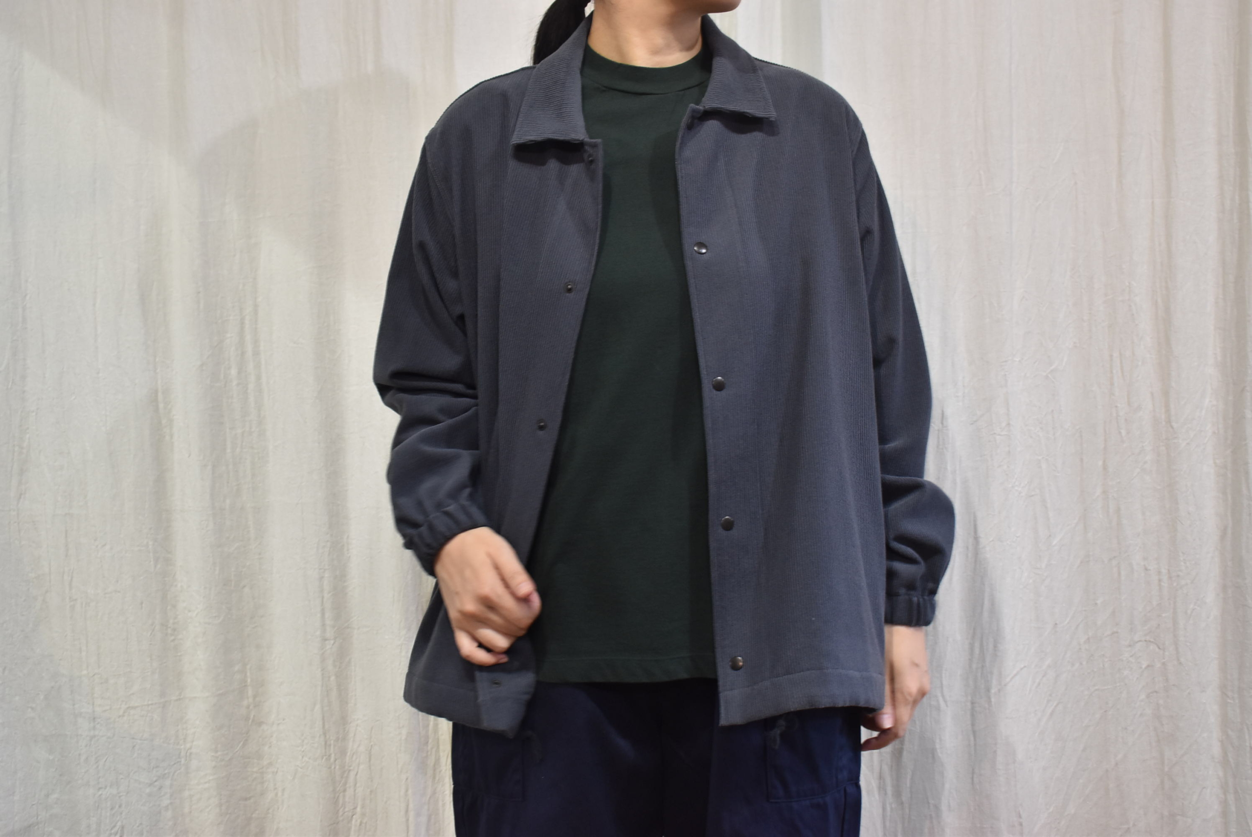 投げかけておきながらオンスタイルではなく、組み合わせたのは温かさ満点ウールコーデュロイのコーチジャケット。