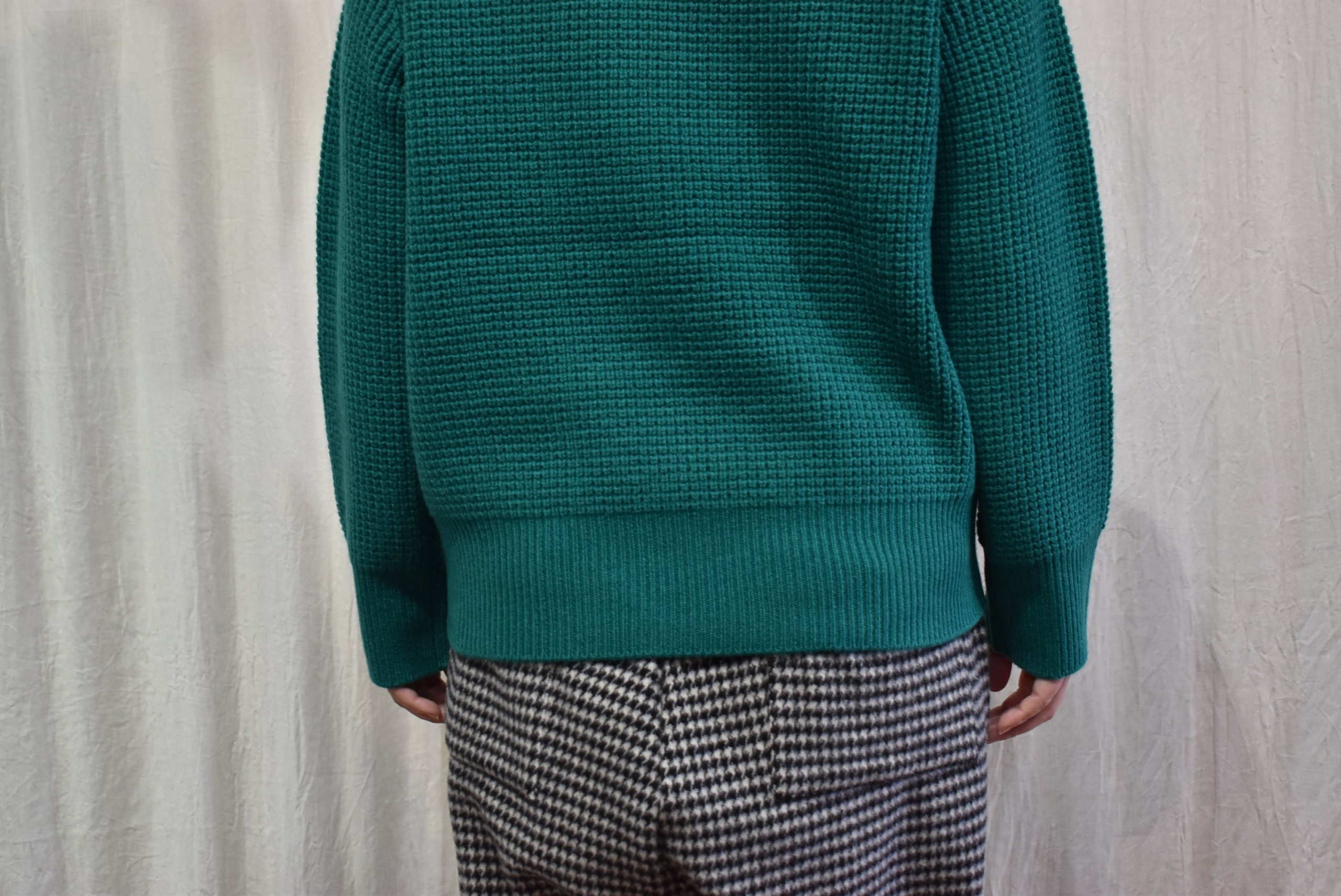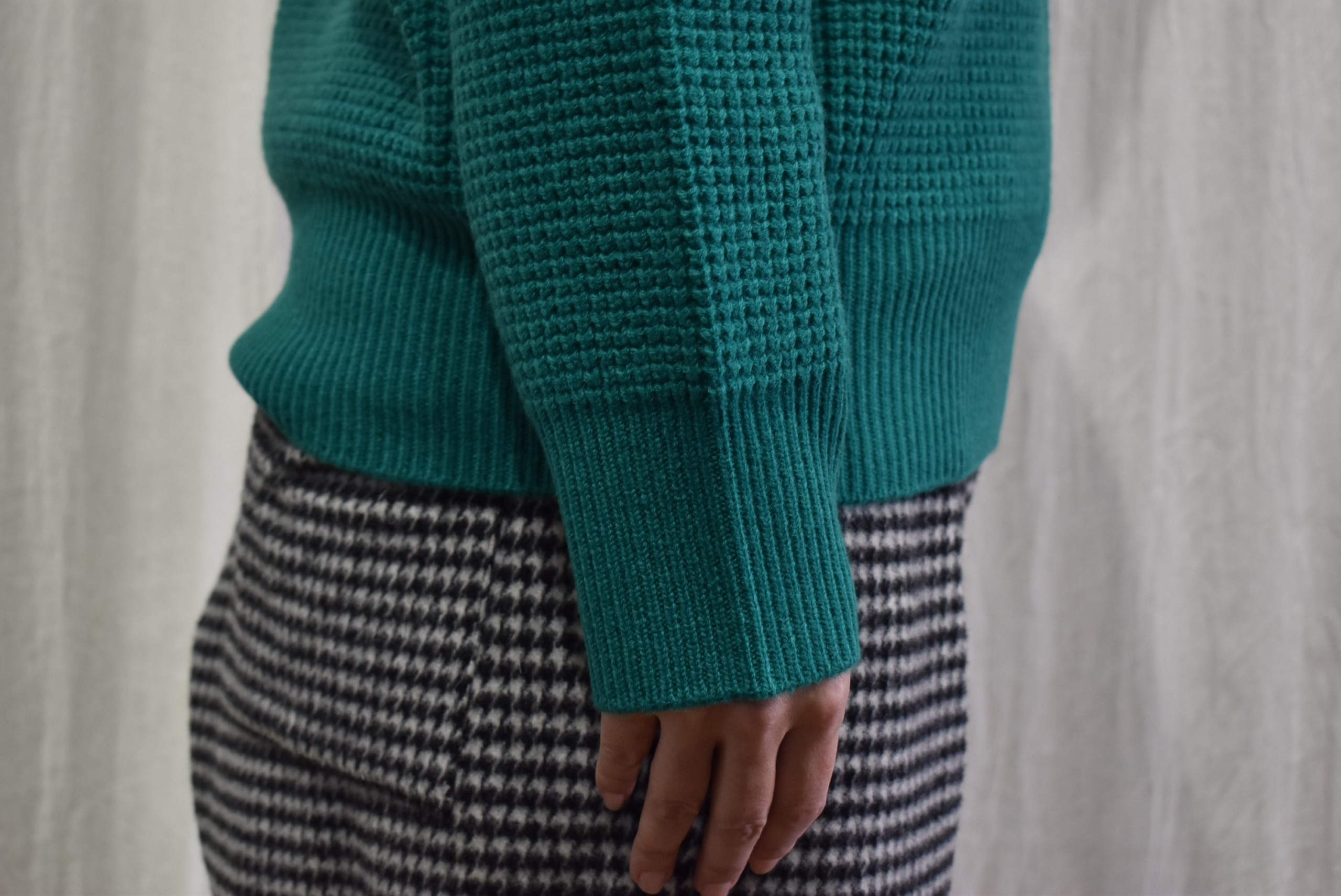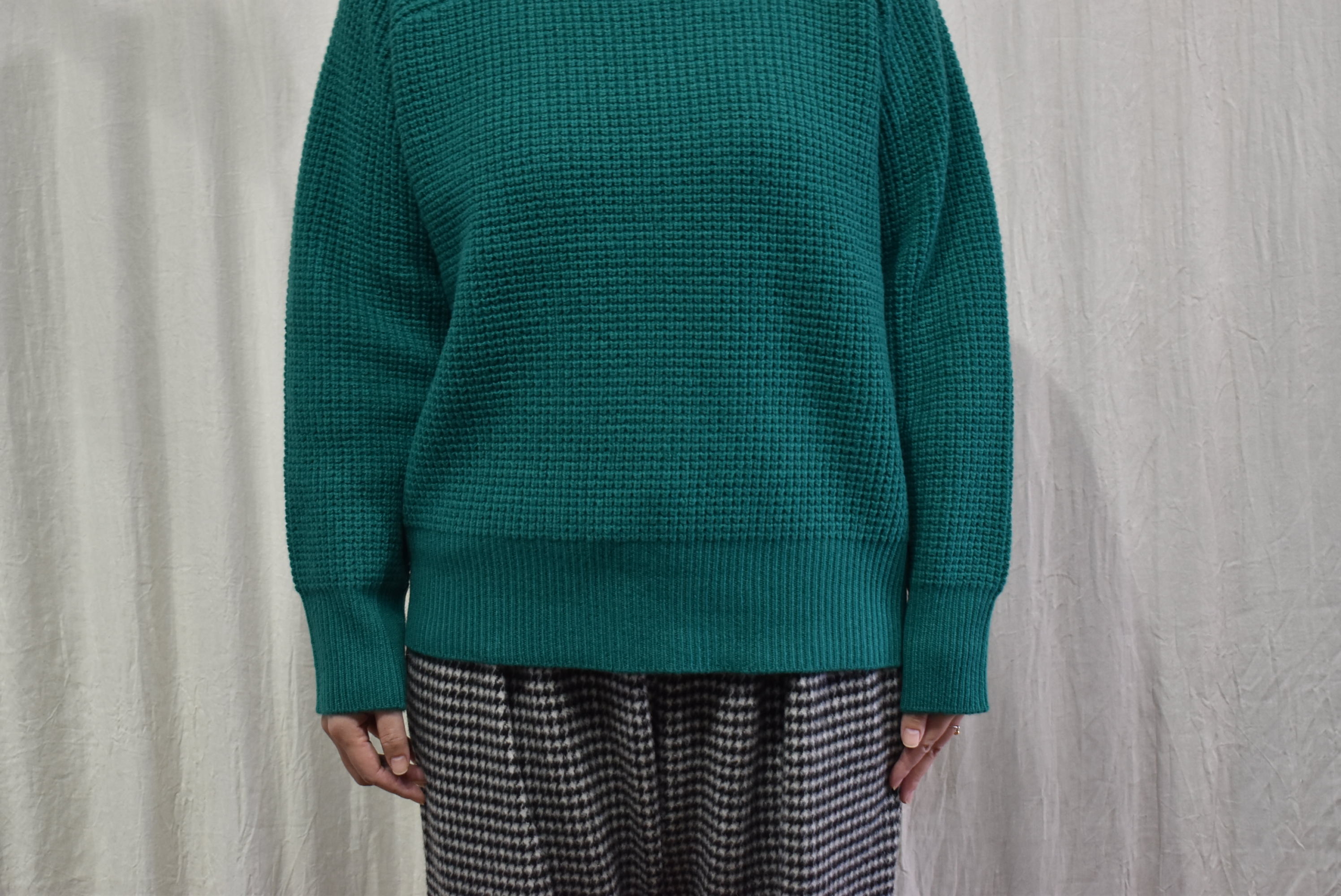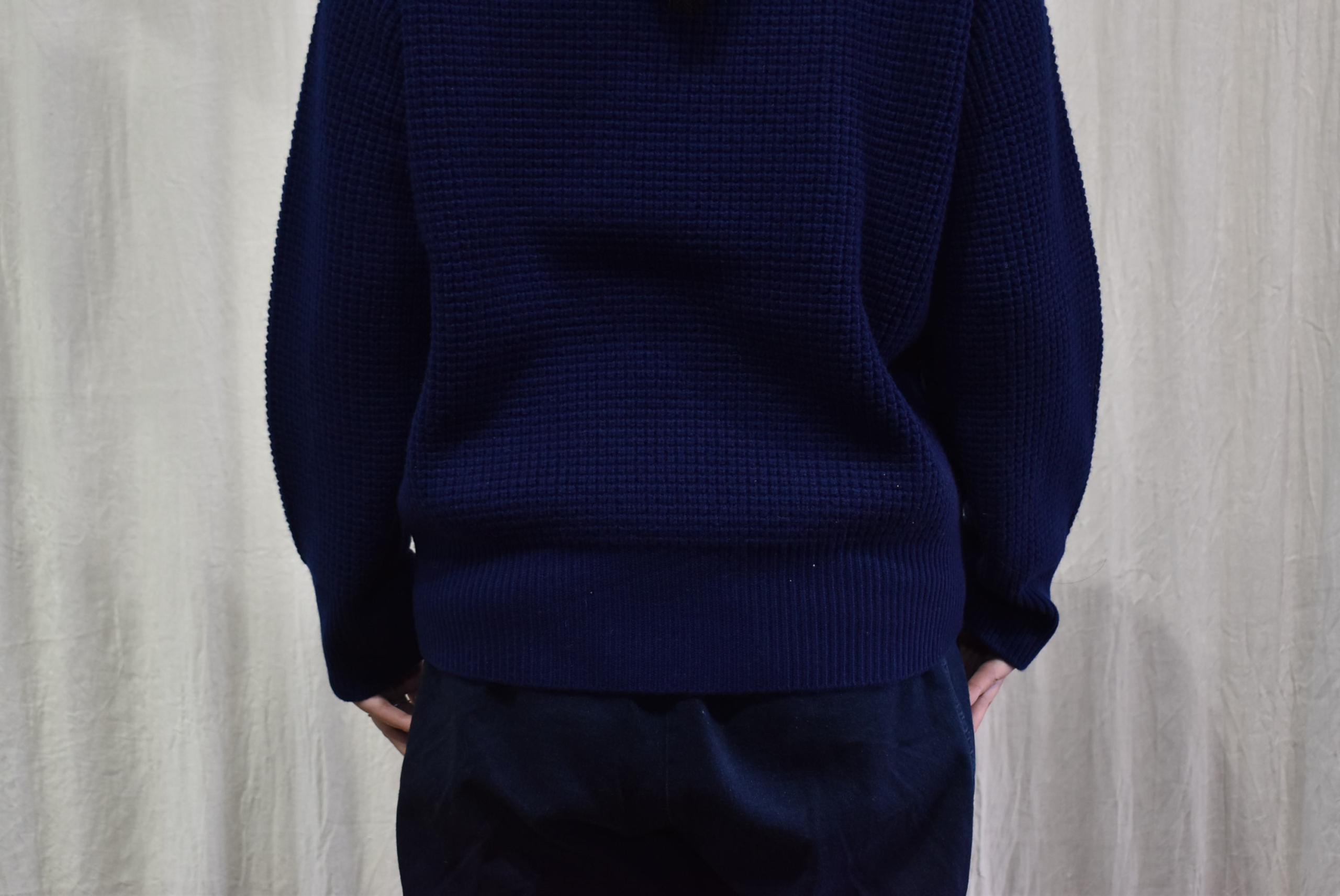一見するとシンプル且つ何てことの無いようでいて、着易さのバランスが絶妙に行き届いたワッフル編みセーターは
