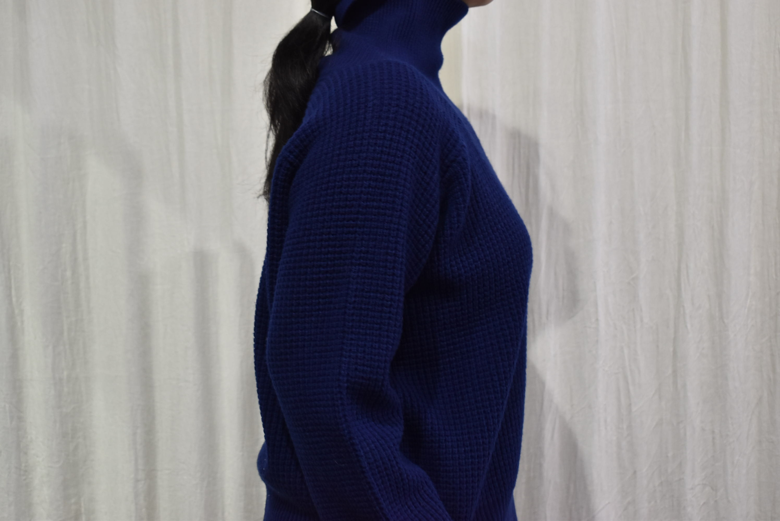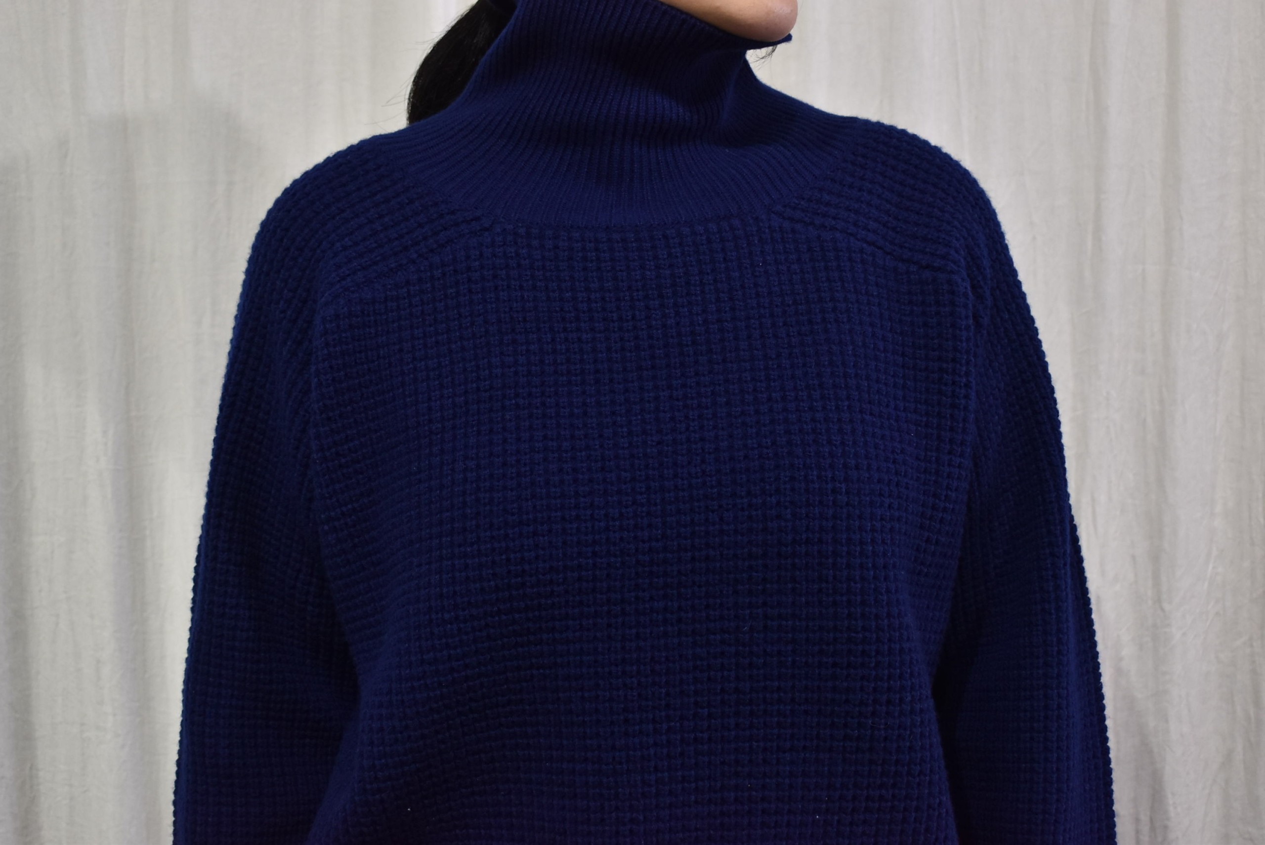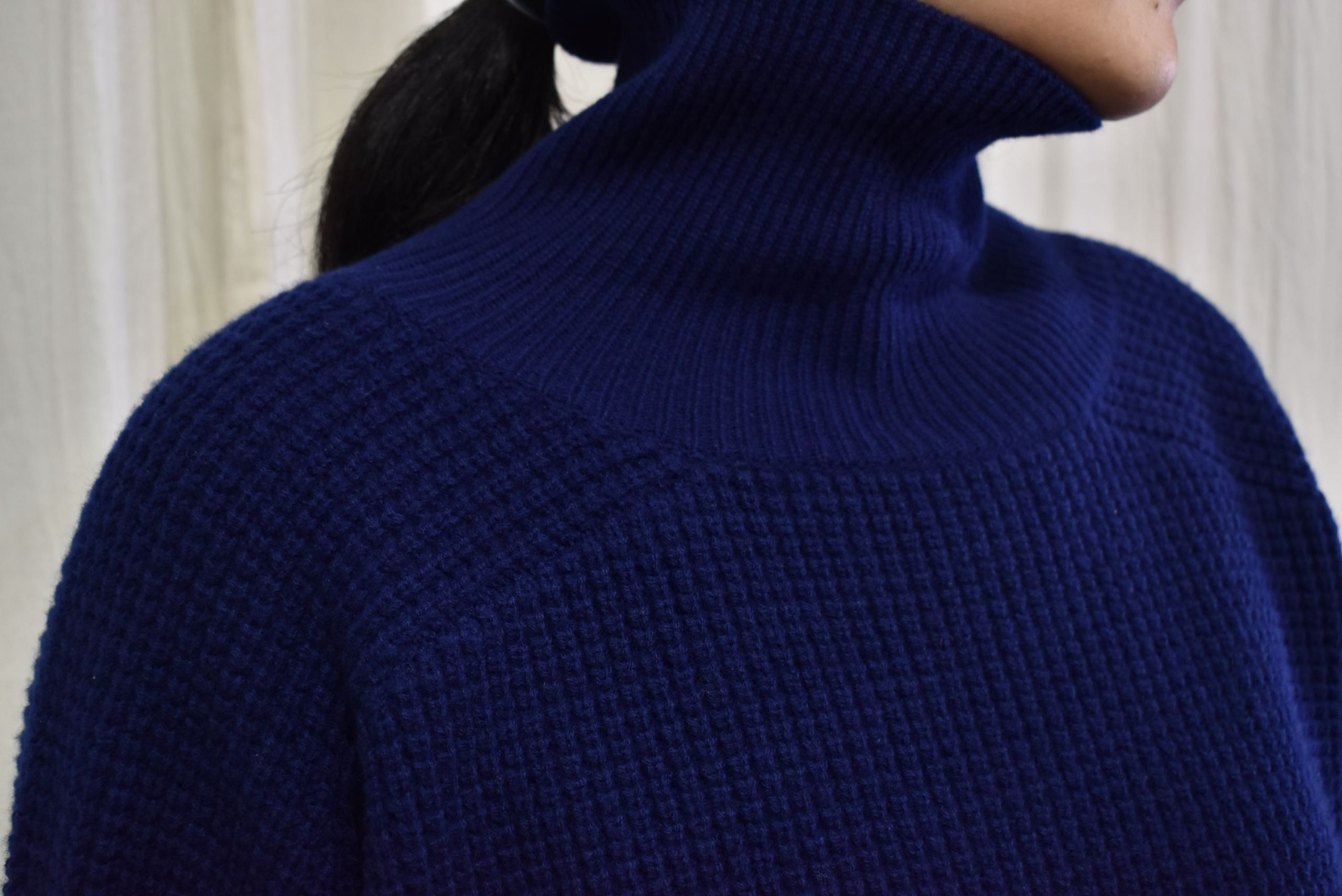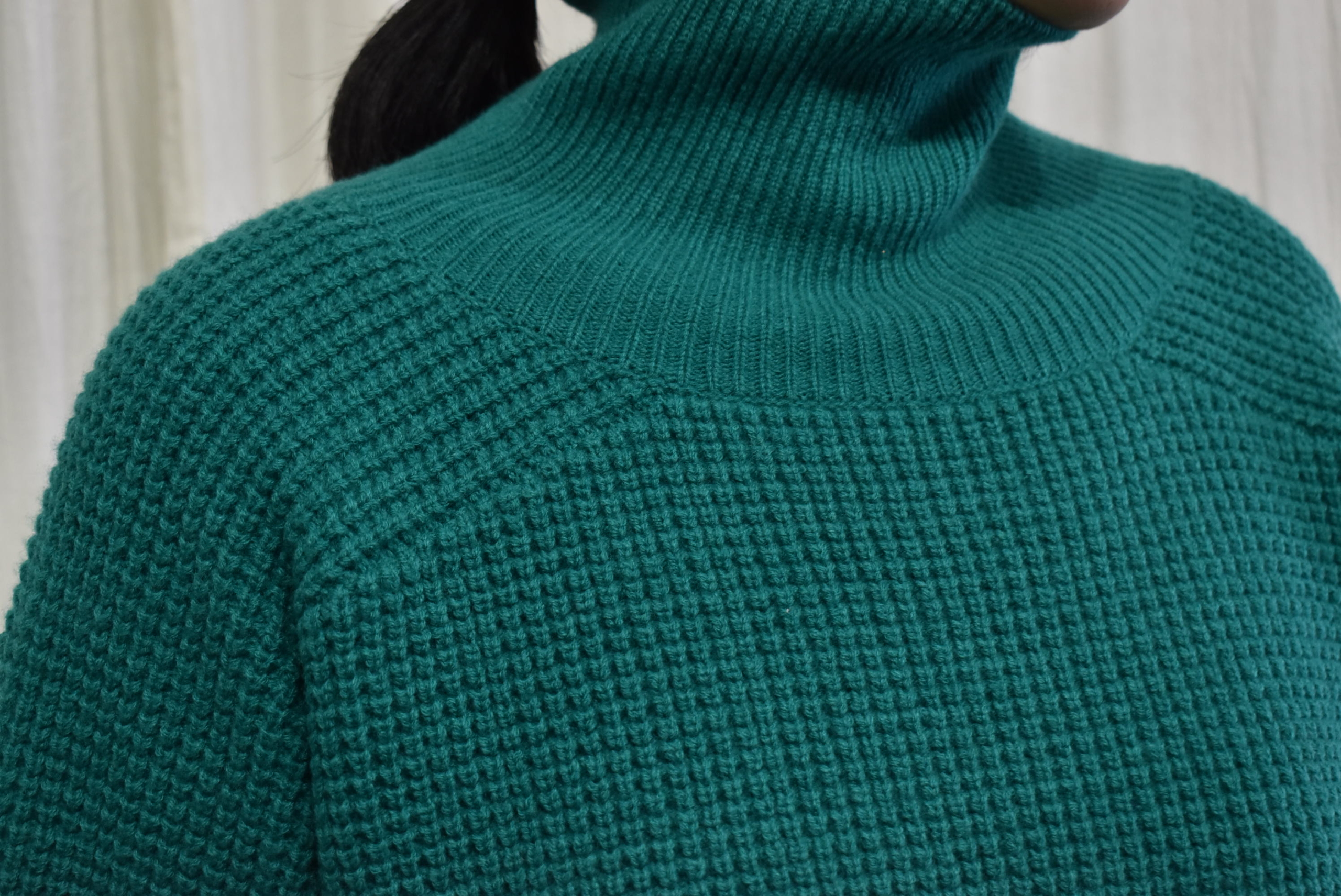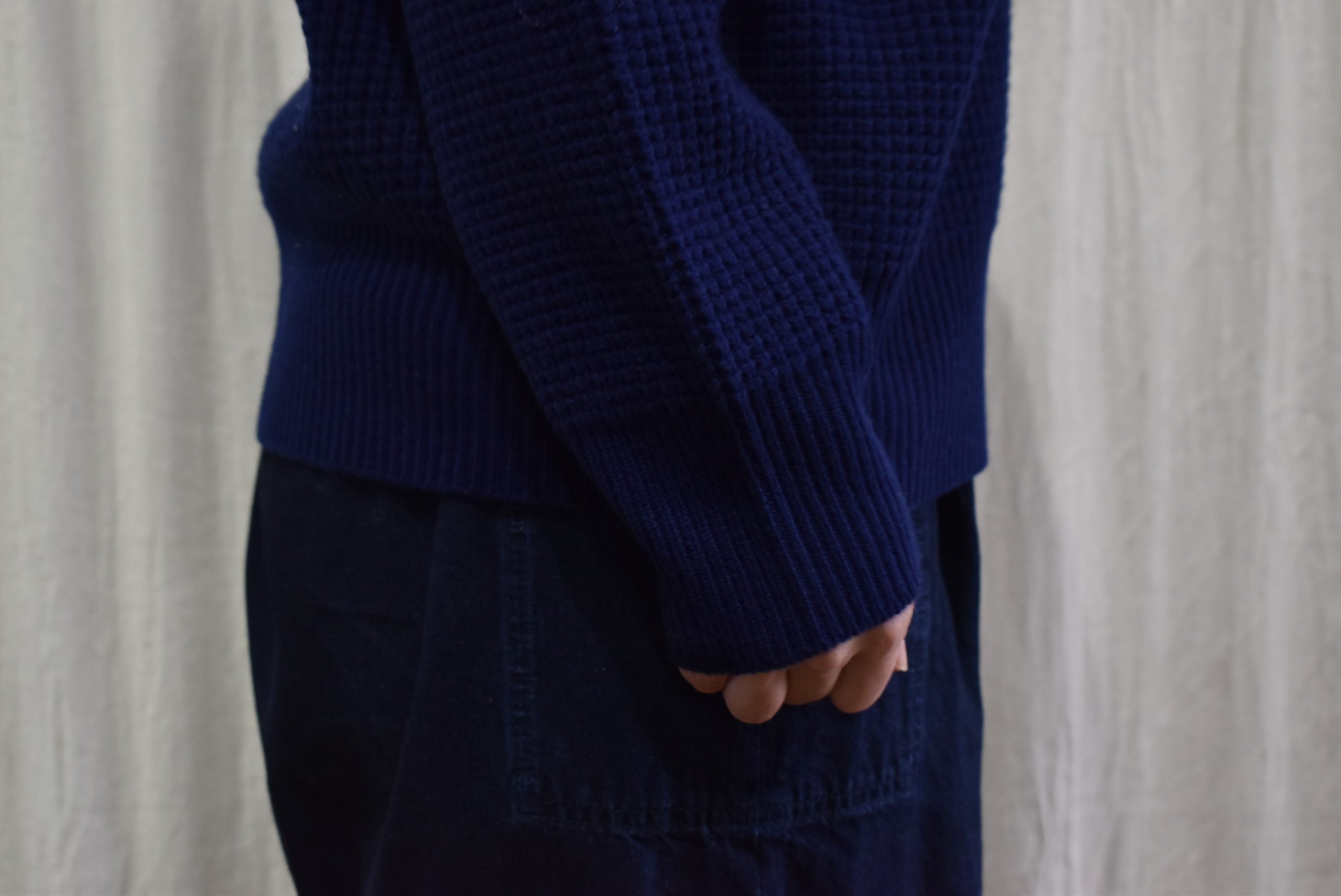 一見するとシンプル且つ何てことの無いようでいて、着易さのバランスが絶妙に行き届いたワッフル編みセーターは