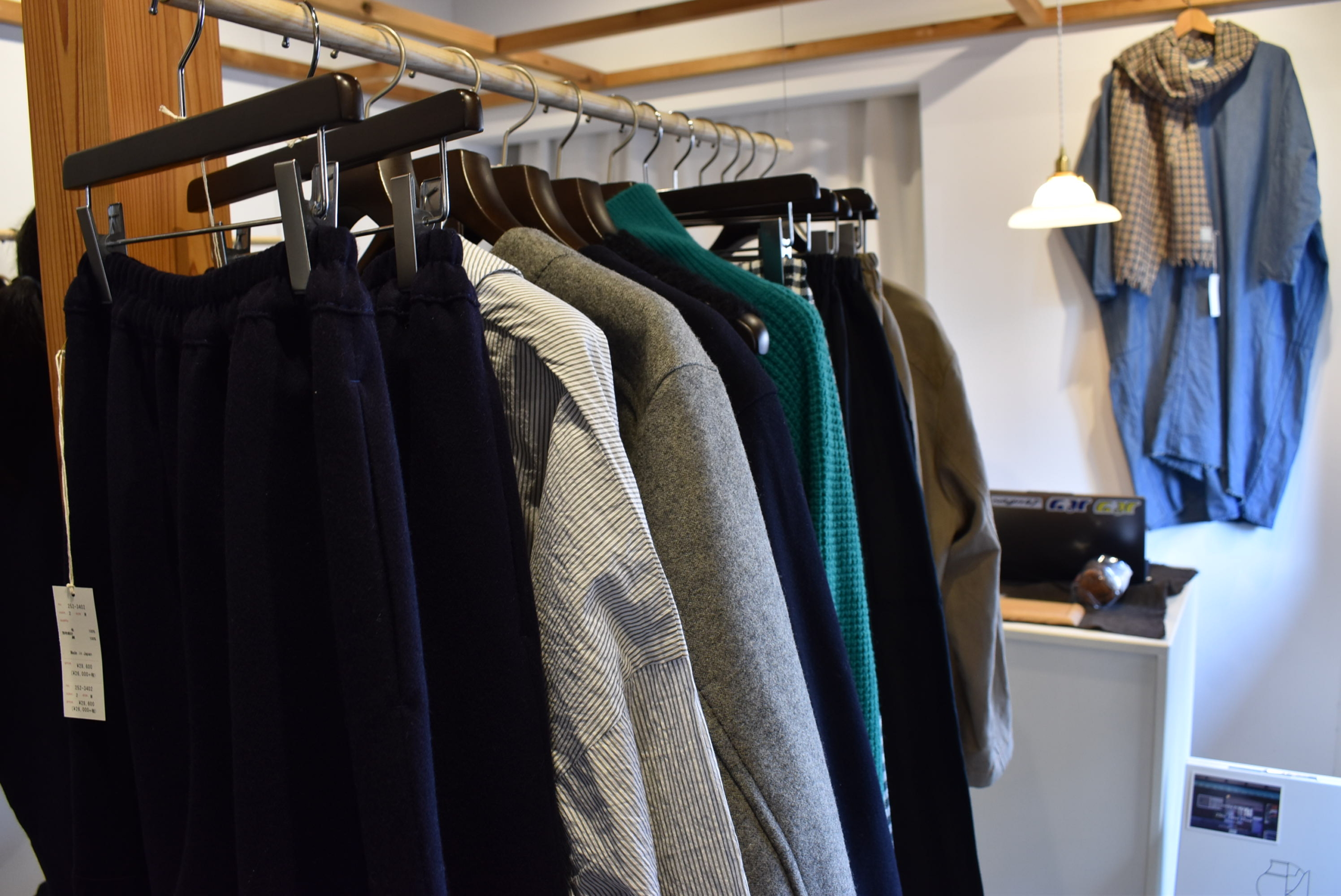 チャイと、僕らも愛用しているヤクやカシミヤの軽くて、肌に気持ちの良いストール。小物や雑貨も並びます。