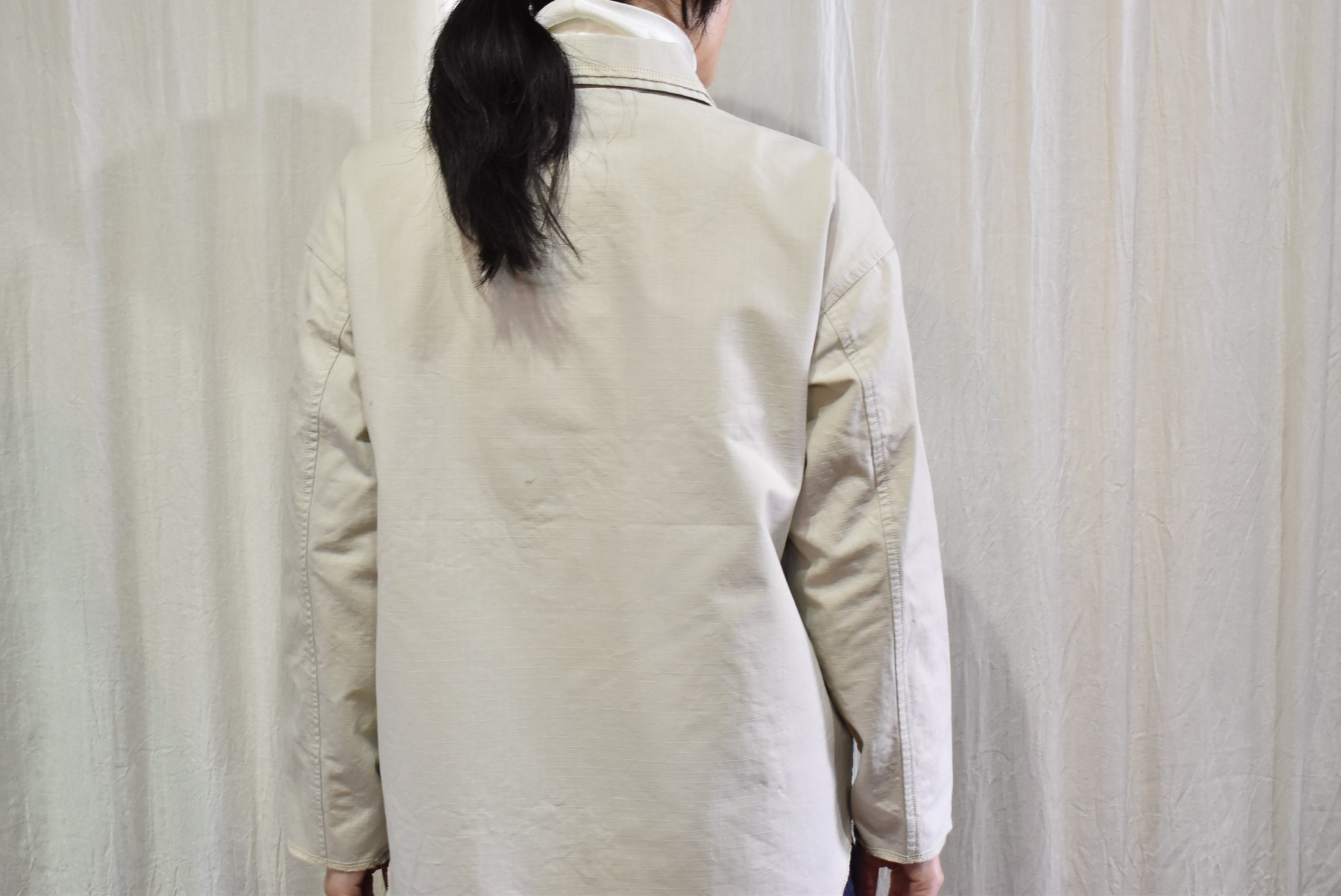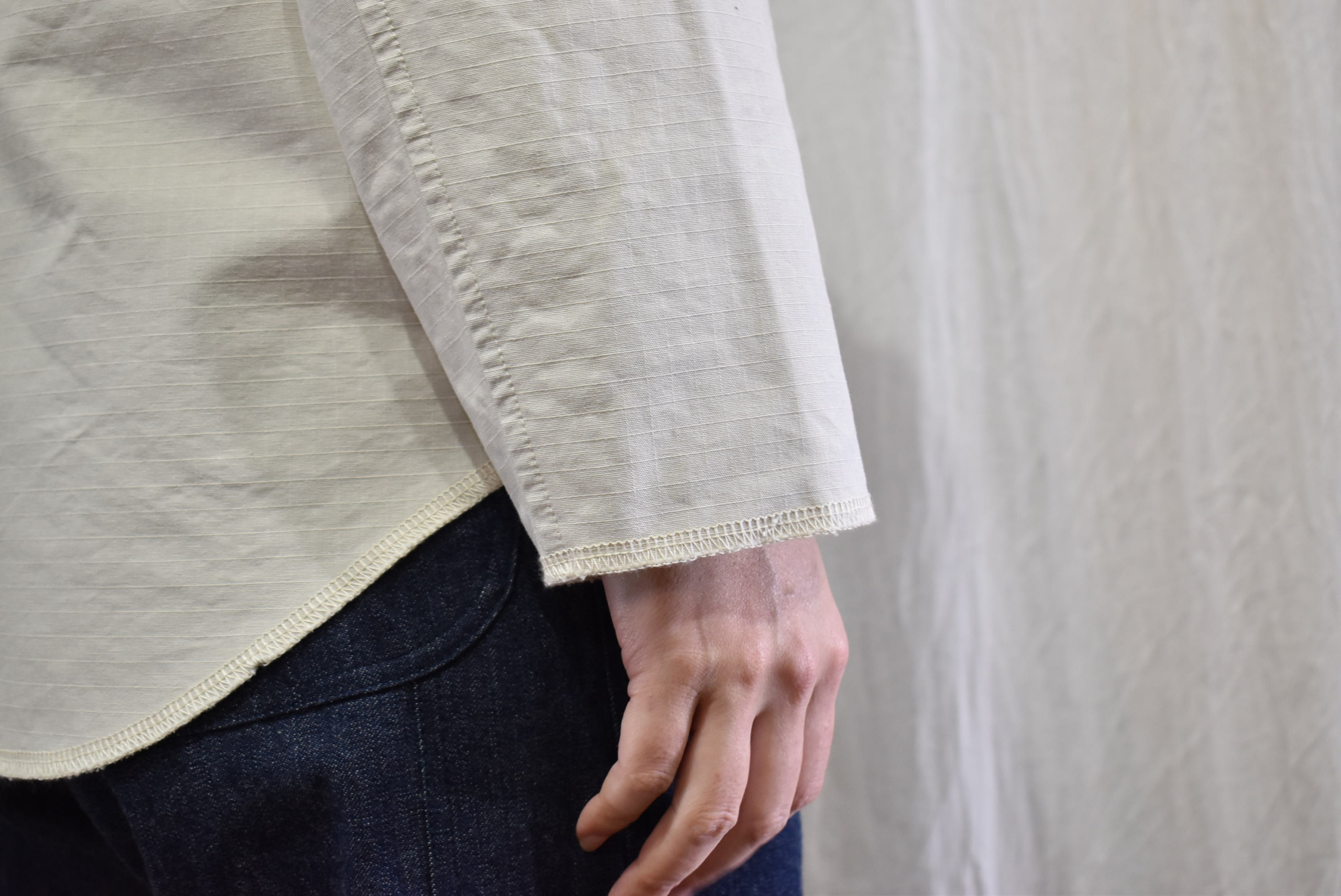袖を通してみるとシャツの要素も微かに感じながら、ジャケットをとても軽やかに着やすくしましたよという印象を