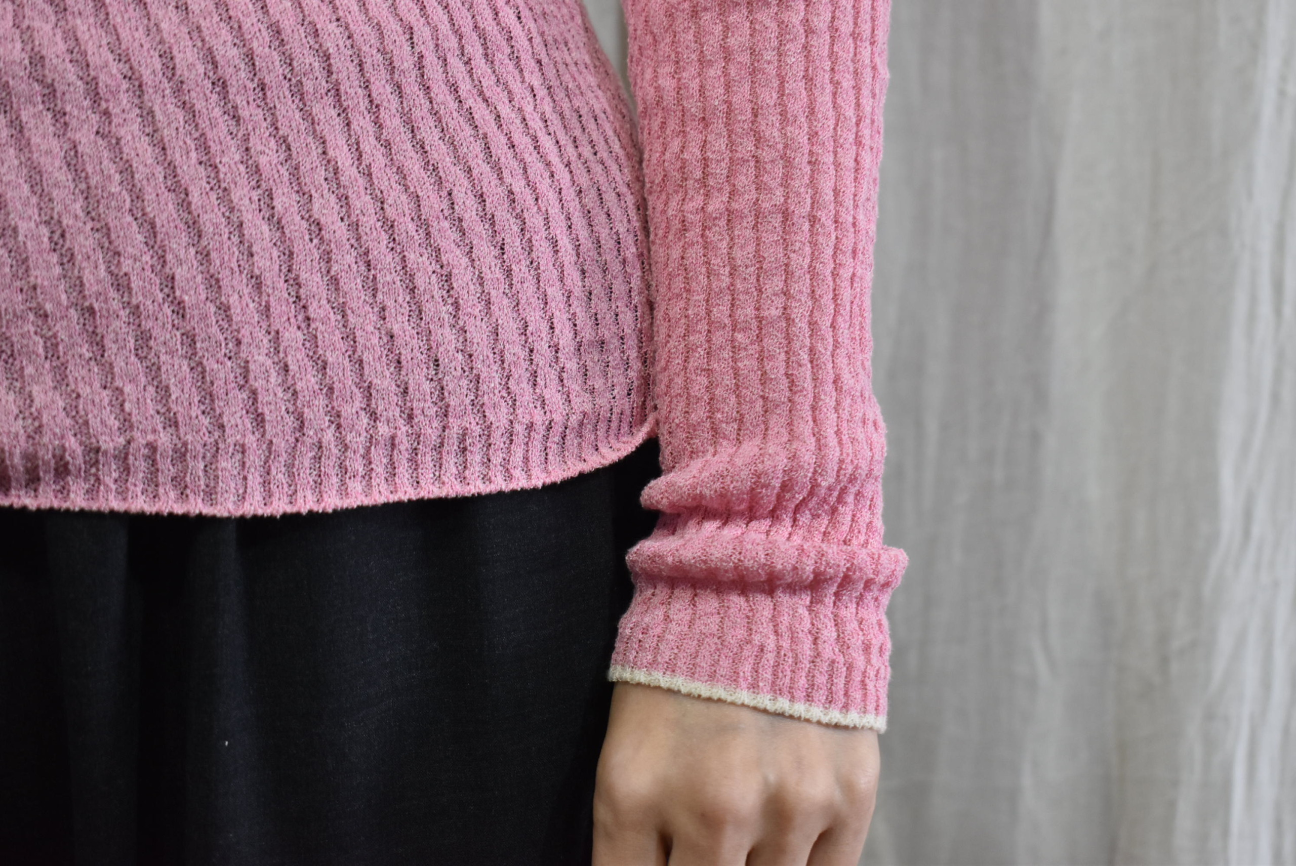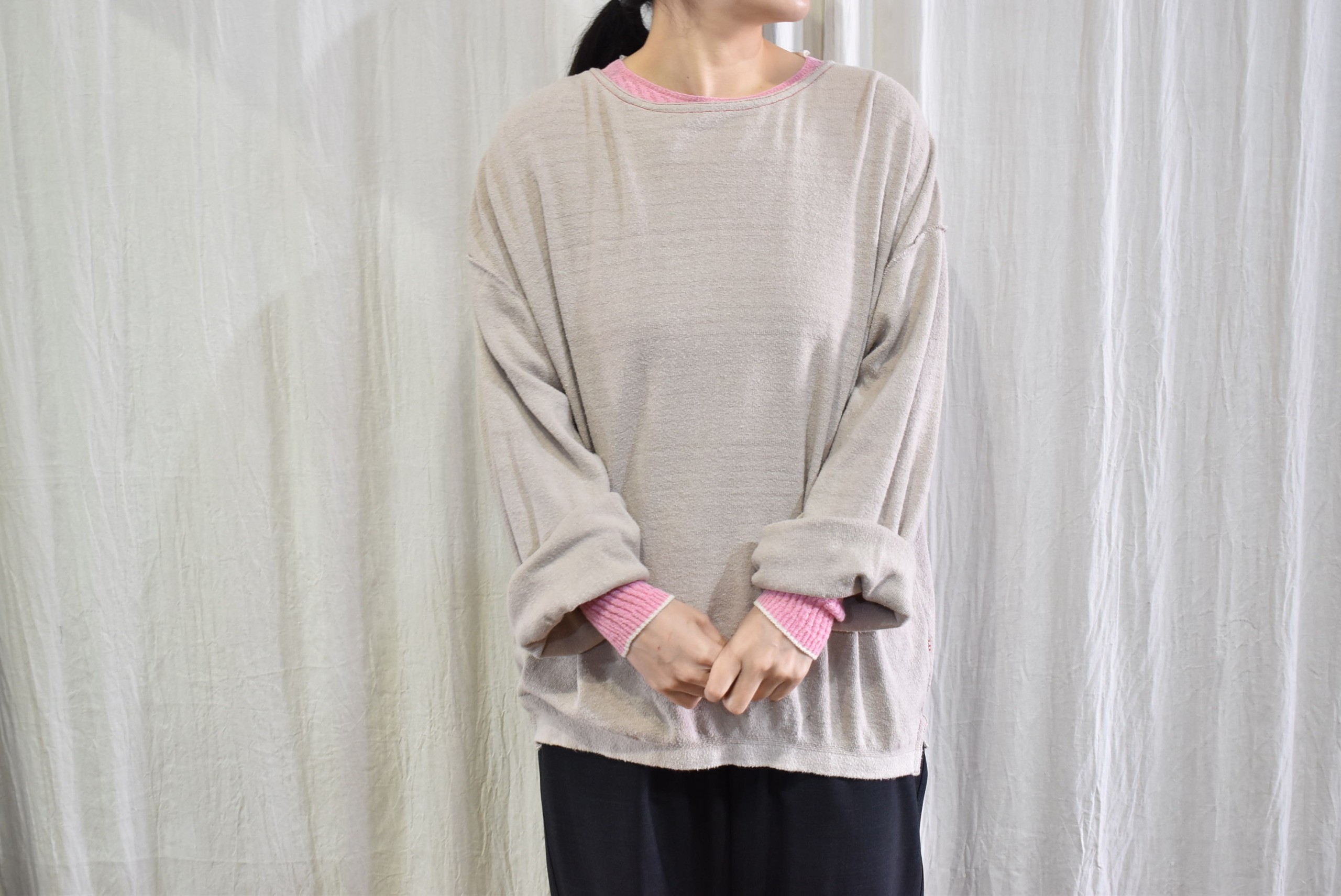 ぽそっとネップ感のあるノイルシルク100%のセーターは、身幅や袖幅にもたっぷりとしたゆとりがあって