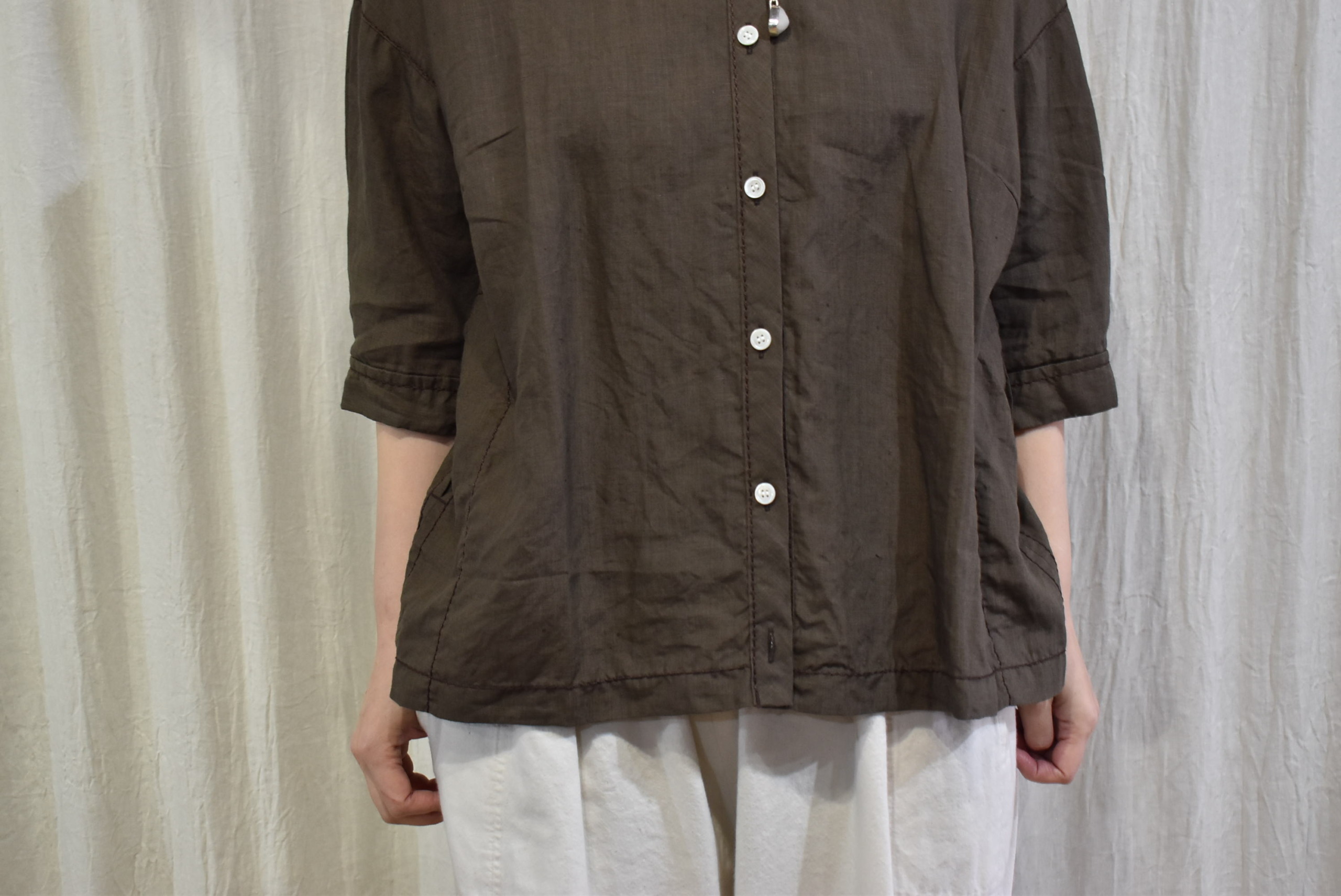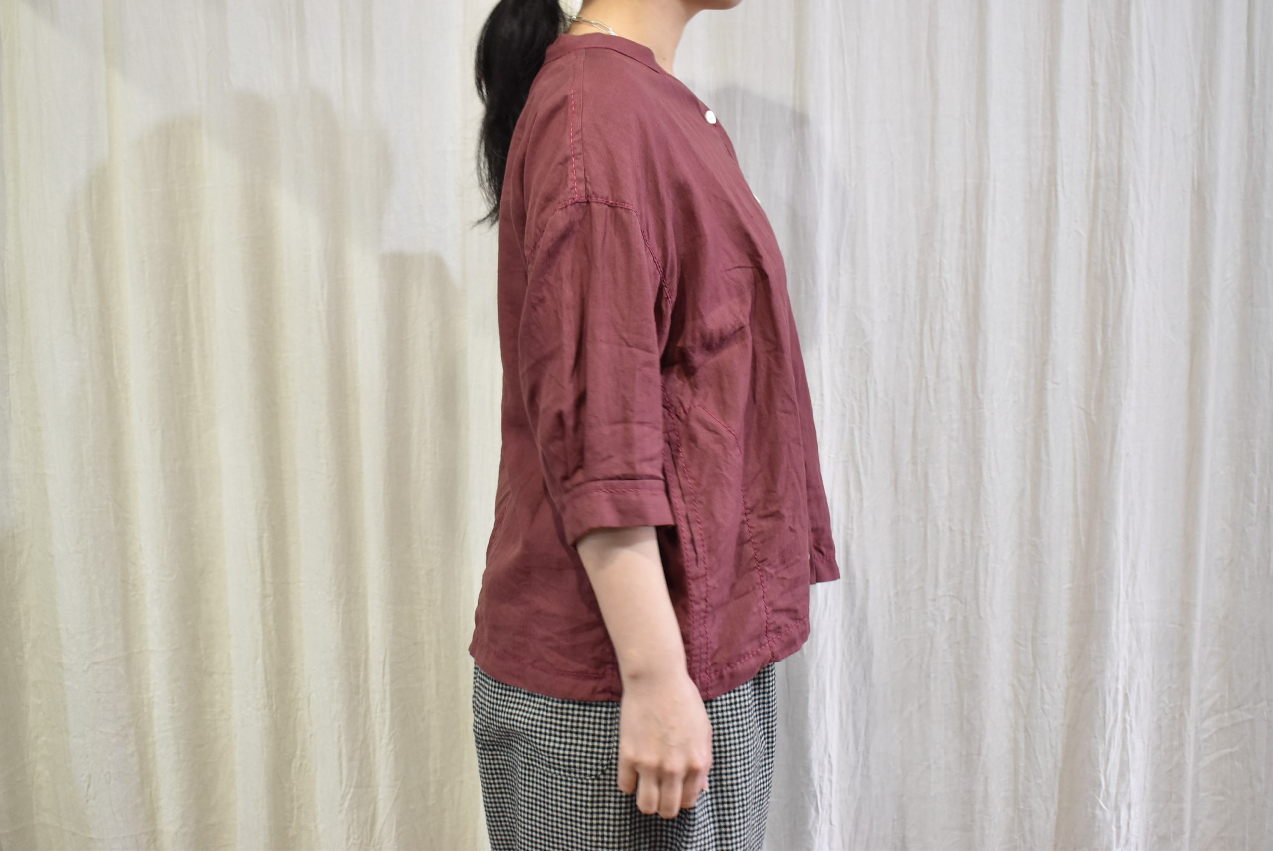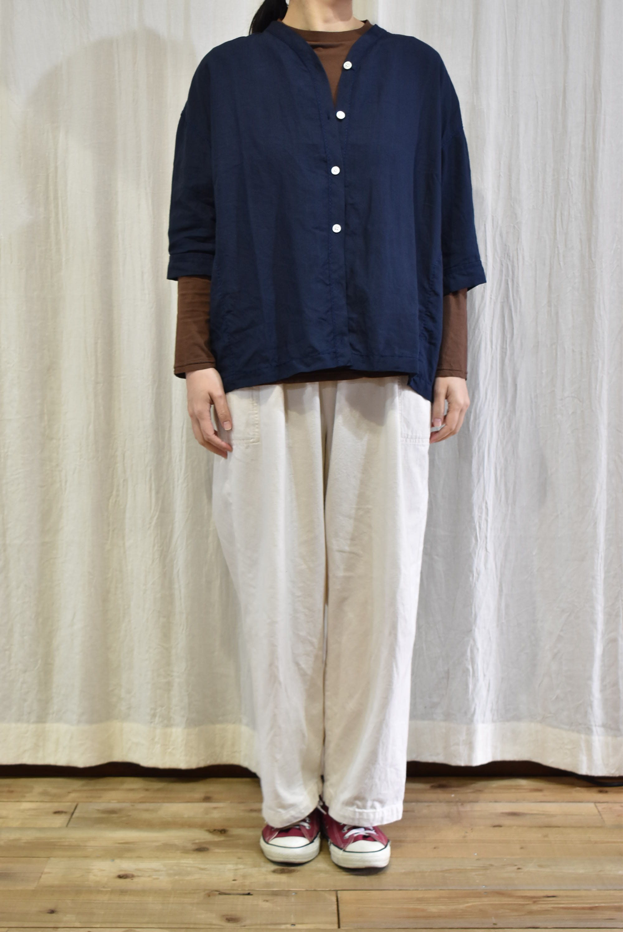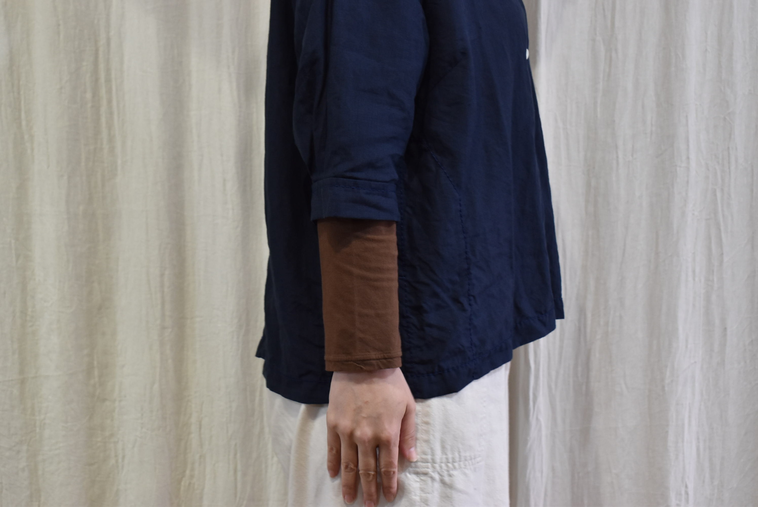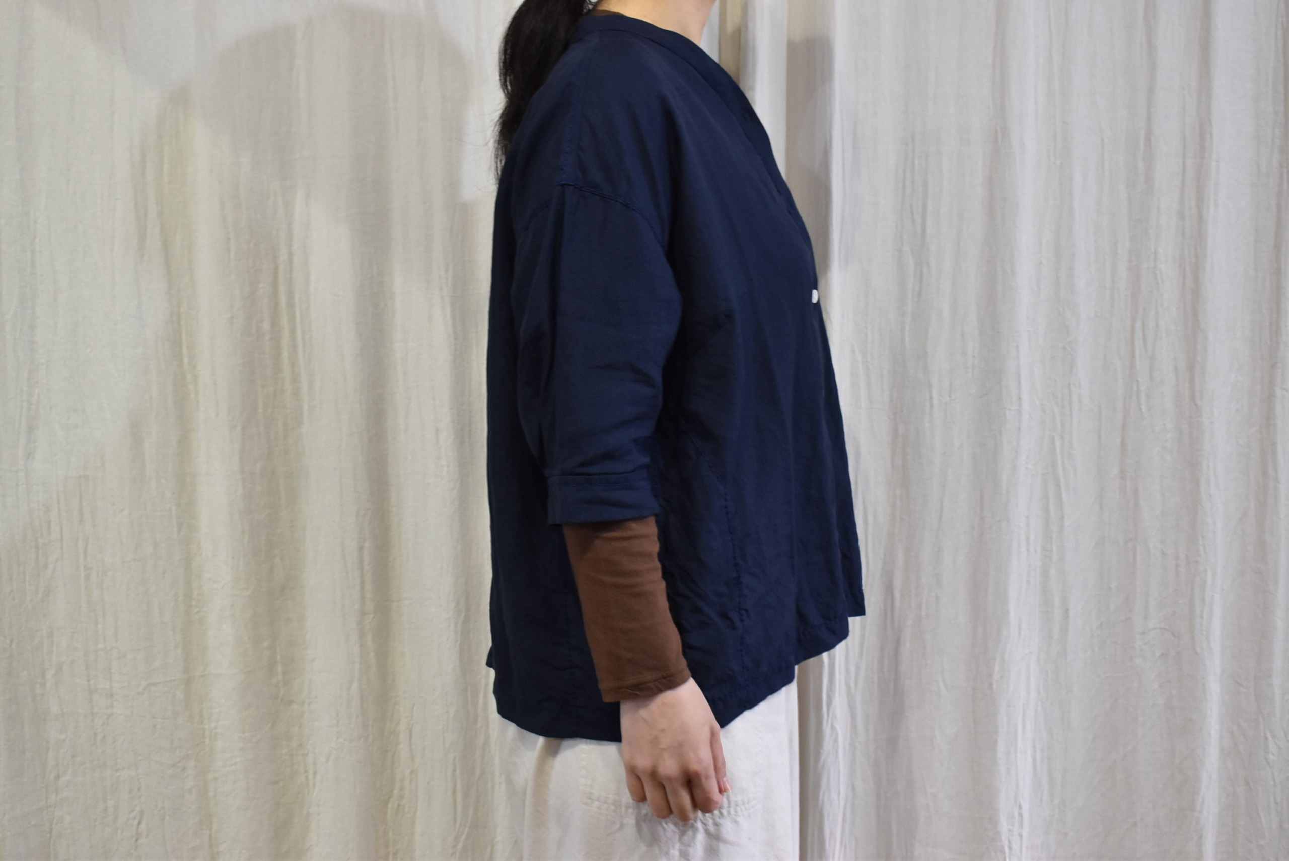 インナーはベーシックなTシャツ(七分袖)にしましたが、ちょっとエレガントなシャツやブラウスに
