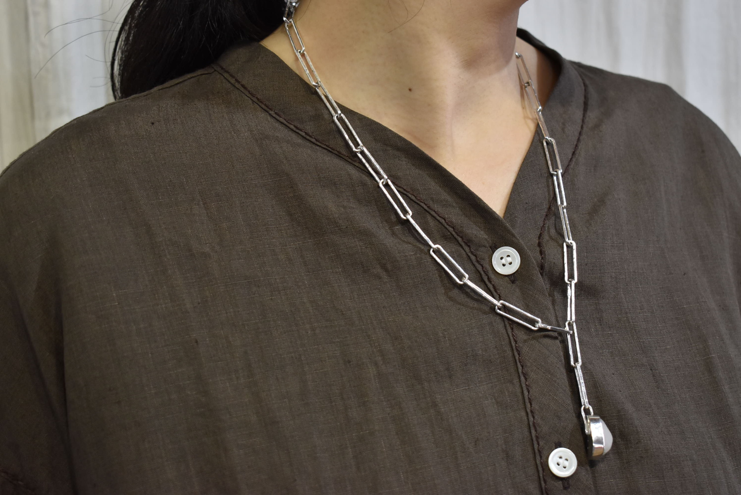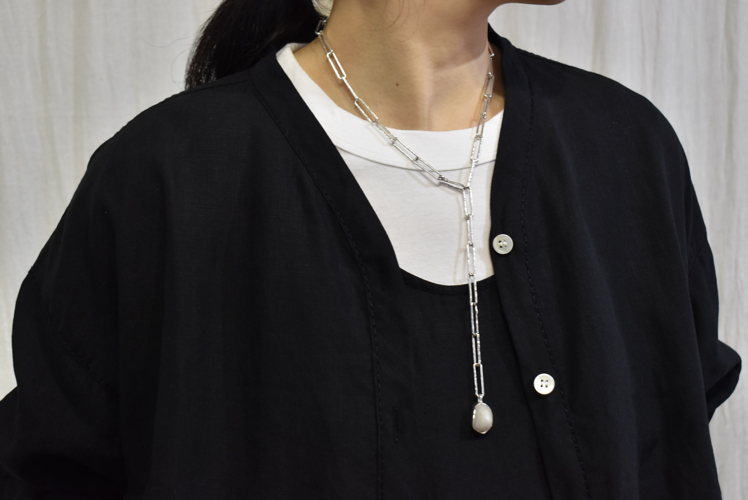 相変わらずの気持ちよい生地感にも、ついつい浮かれてお気に入りのネックレスも身につけちゃいました。(笑)