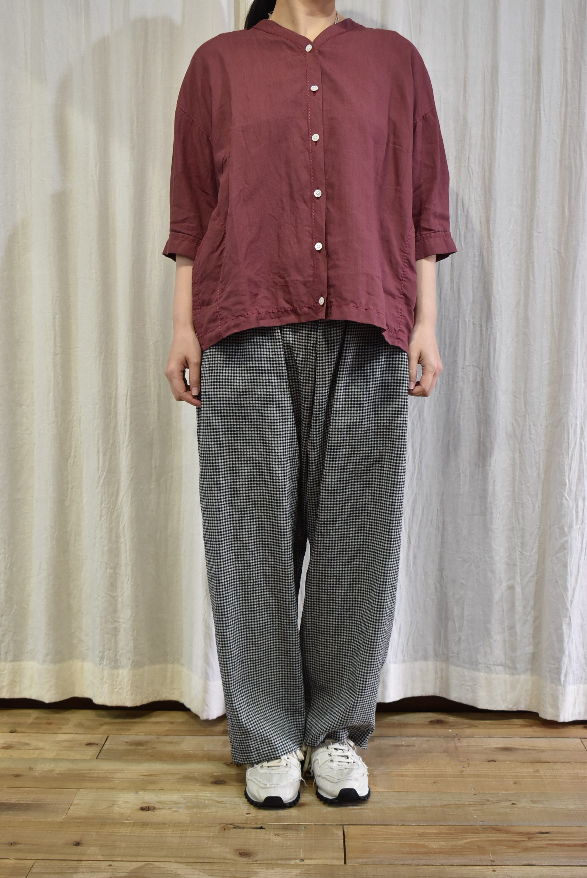 そして、ワンピース・ブラウスの他に、八分丈のパンツも同じくリネンバイオの生地でリリースしているので