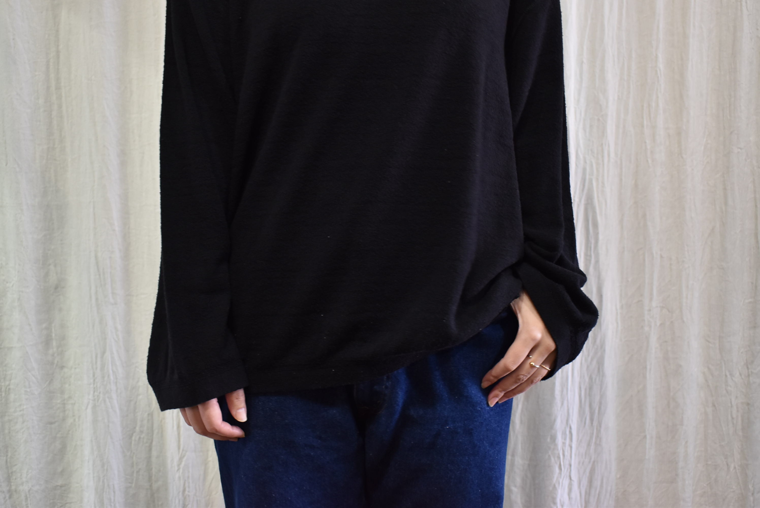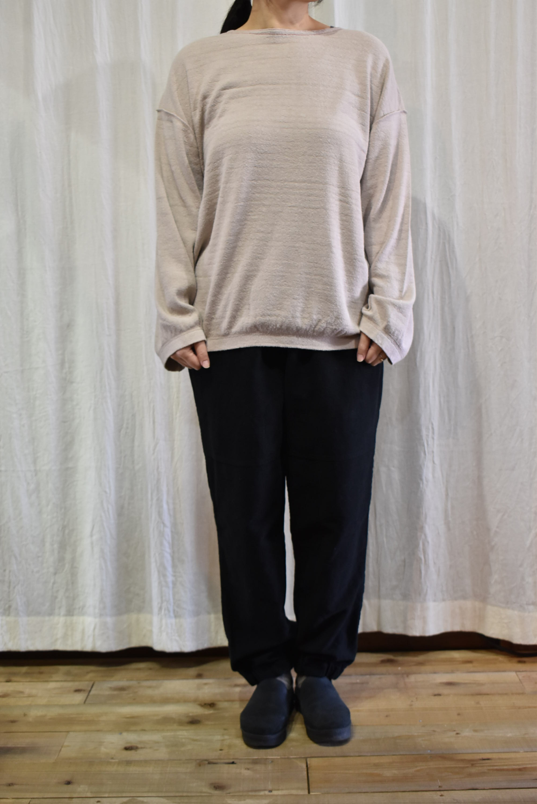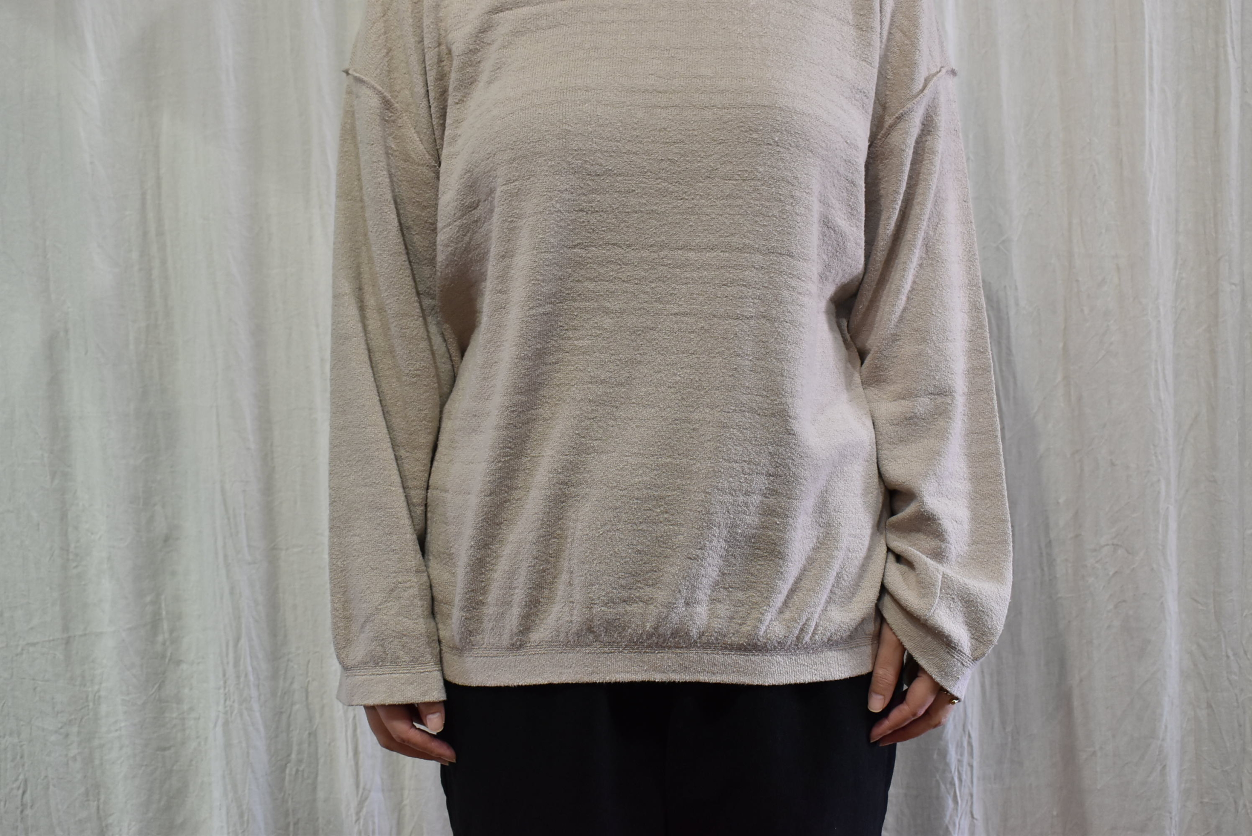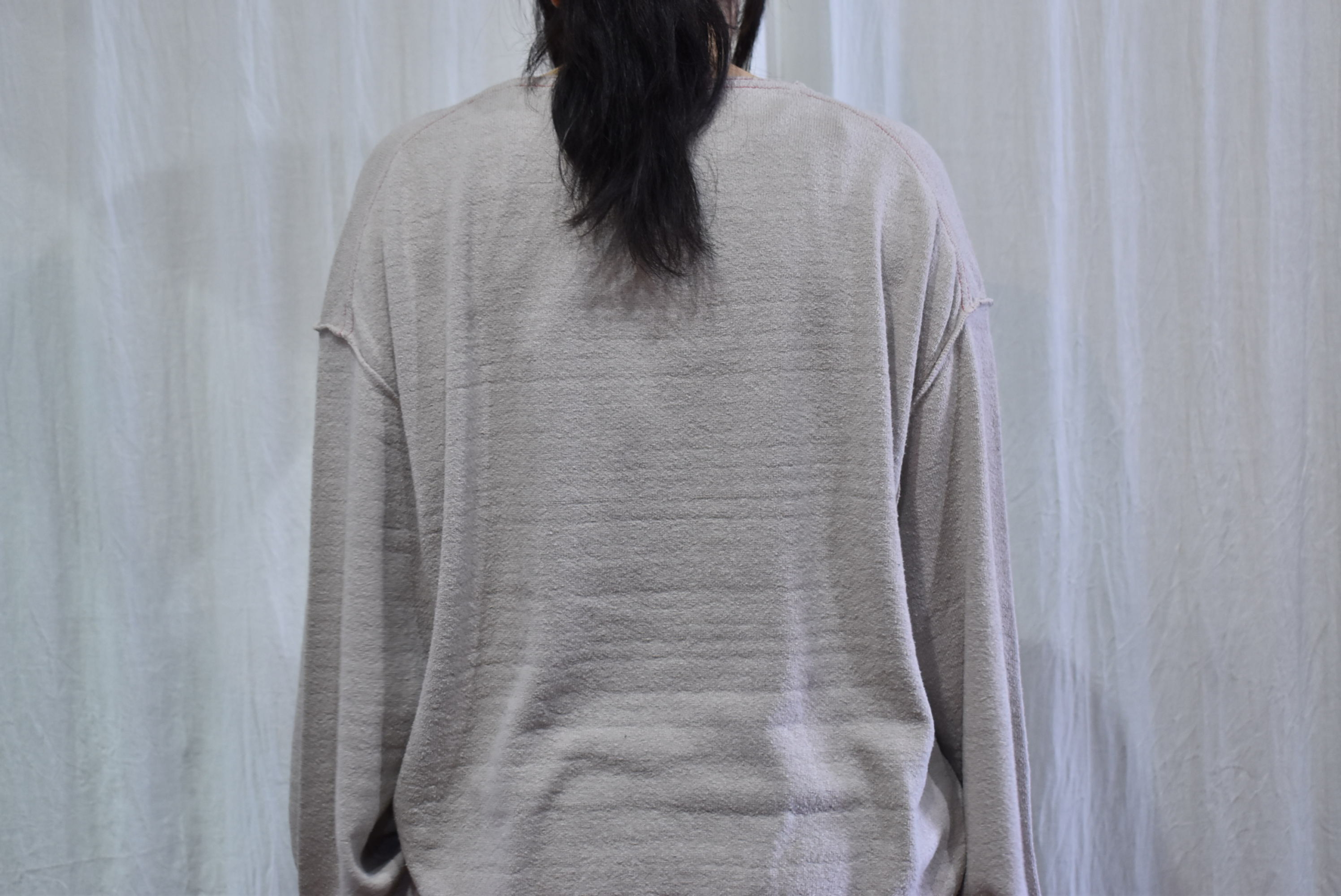 肩もしっかり目にドロップさせていますが、ニットならではの落ち感ととともに、柔らかで少しだけぽそぽそと節のある