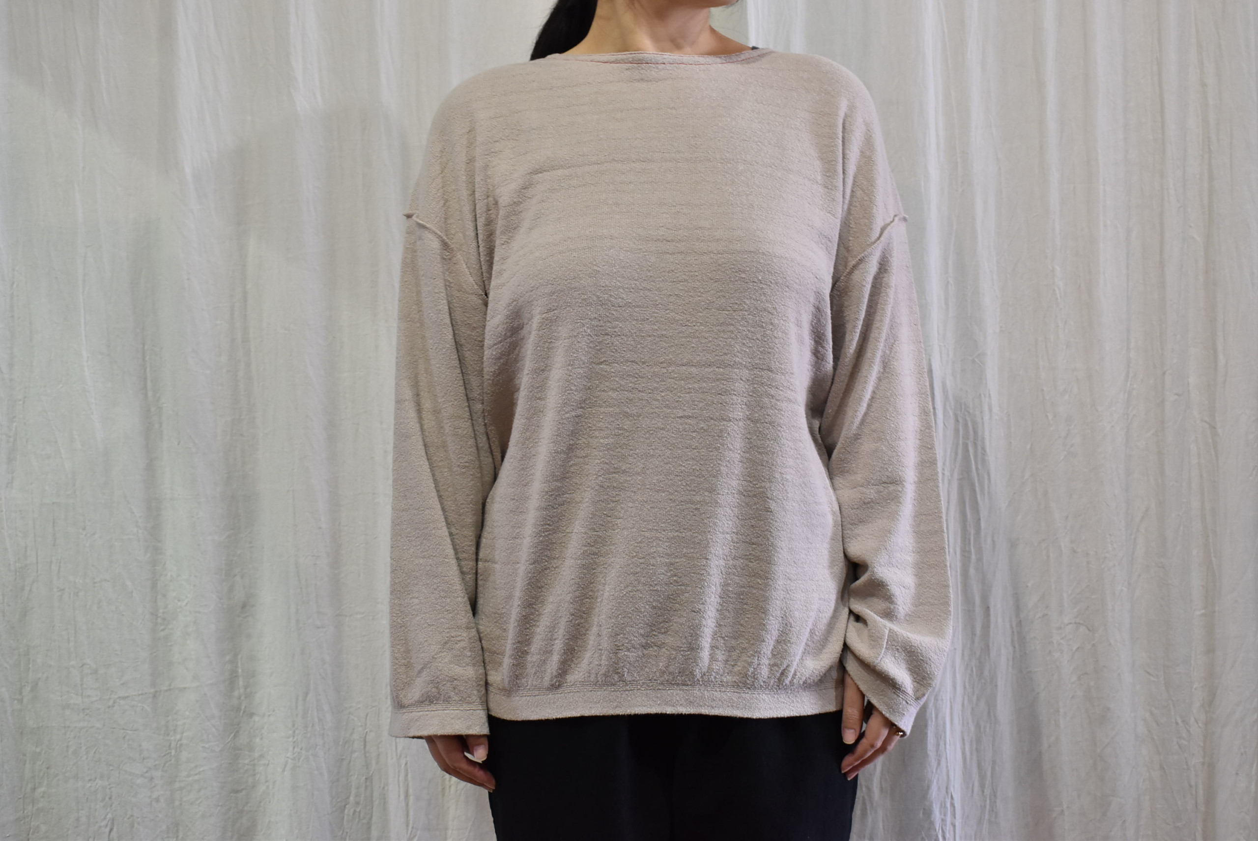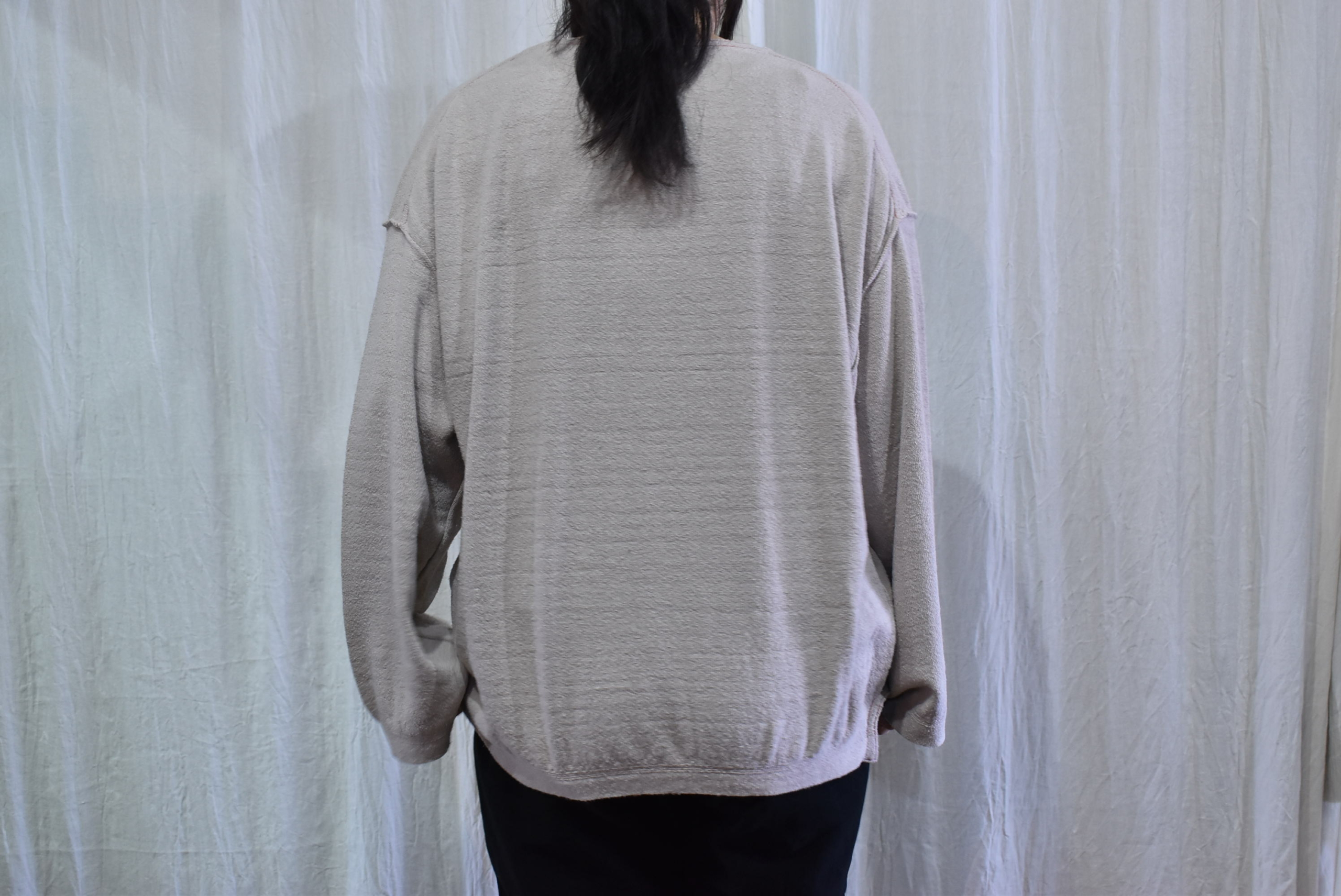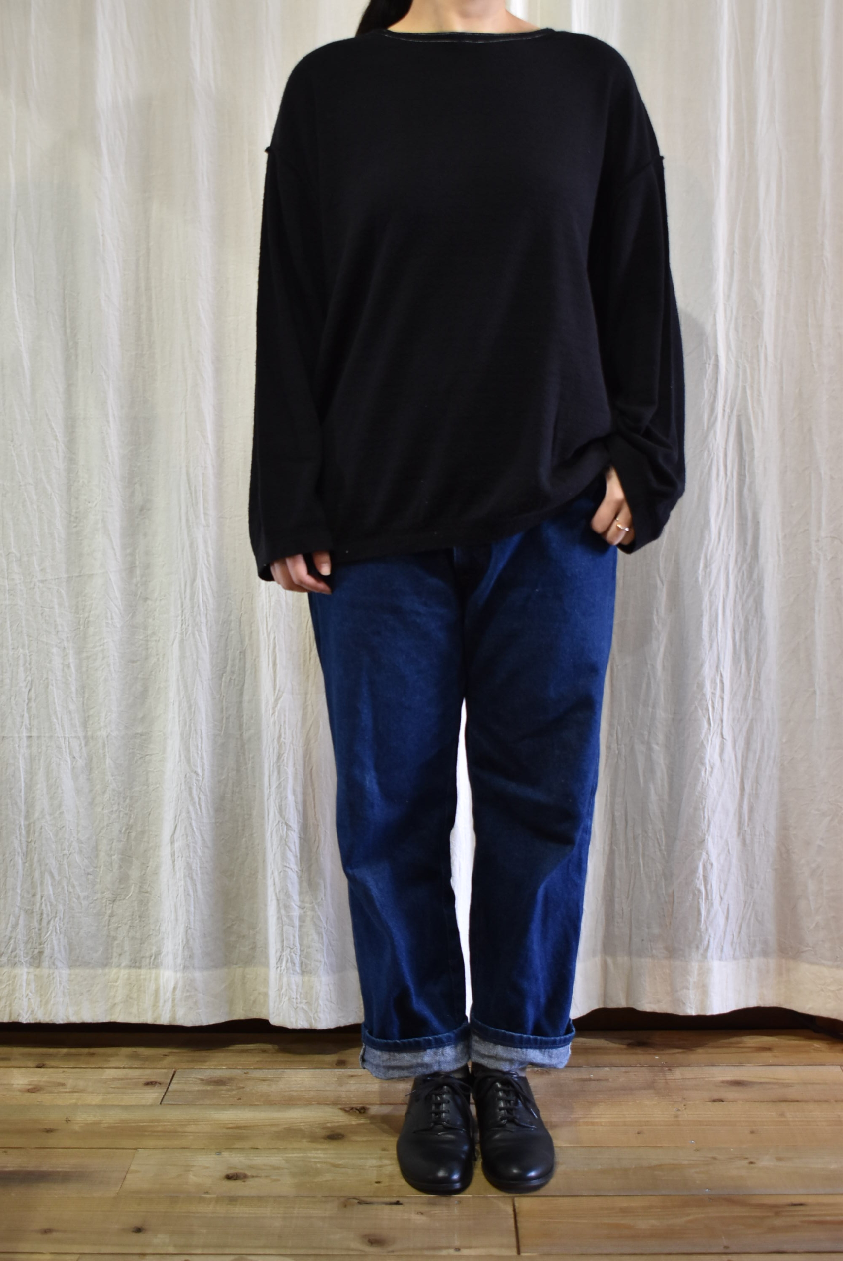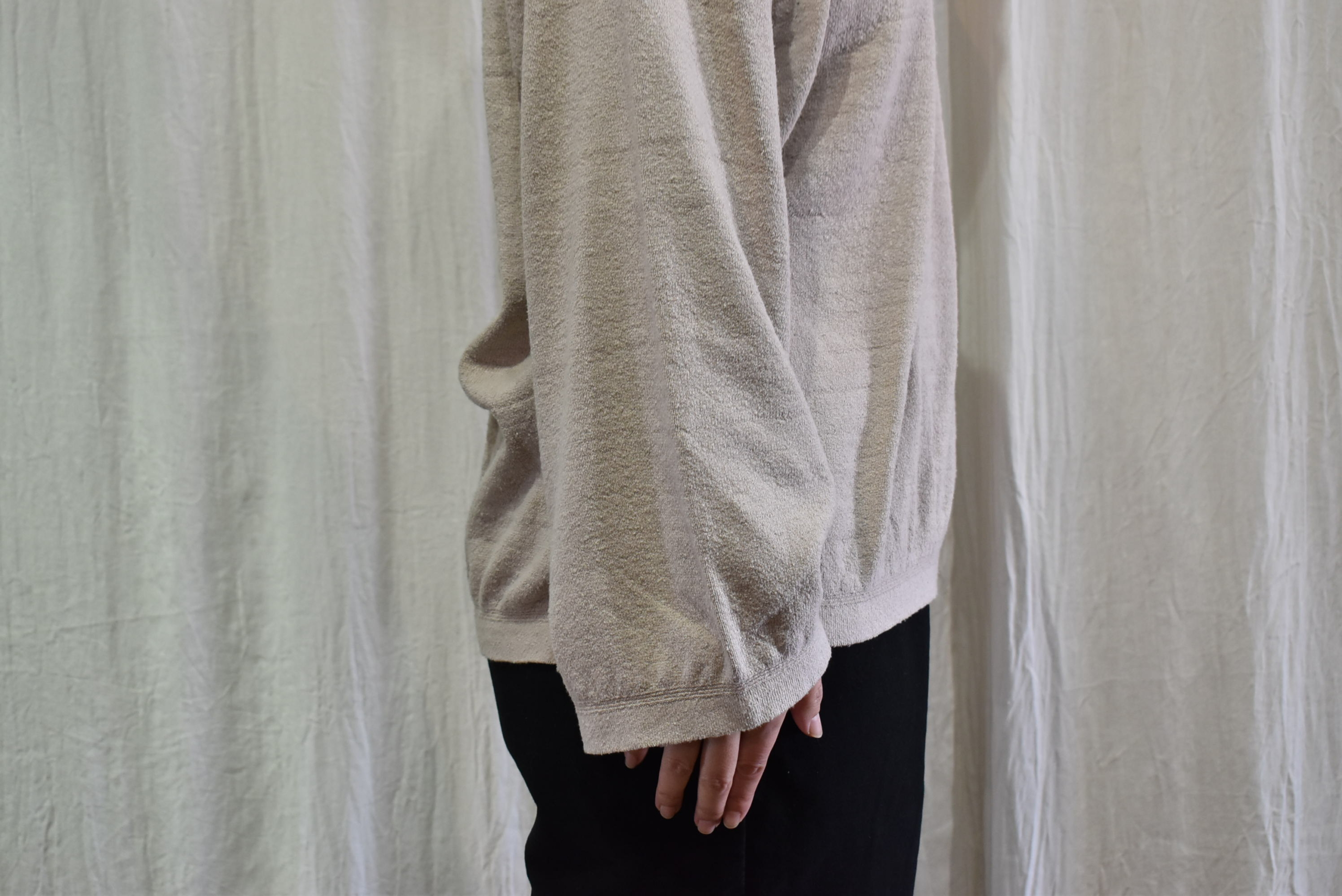肩もしっかり目にドロップさせていますが、ニットならではの落ち感ととともに、柔らかで少しだけぽそぽそと節のある