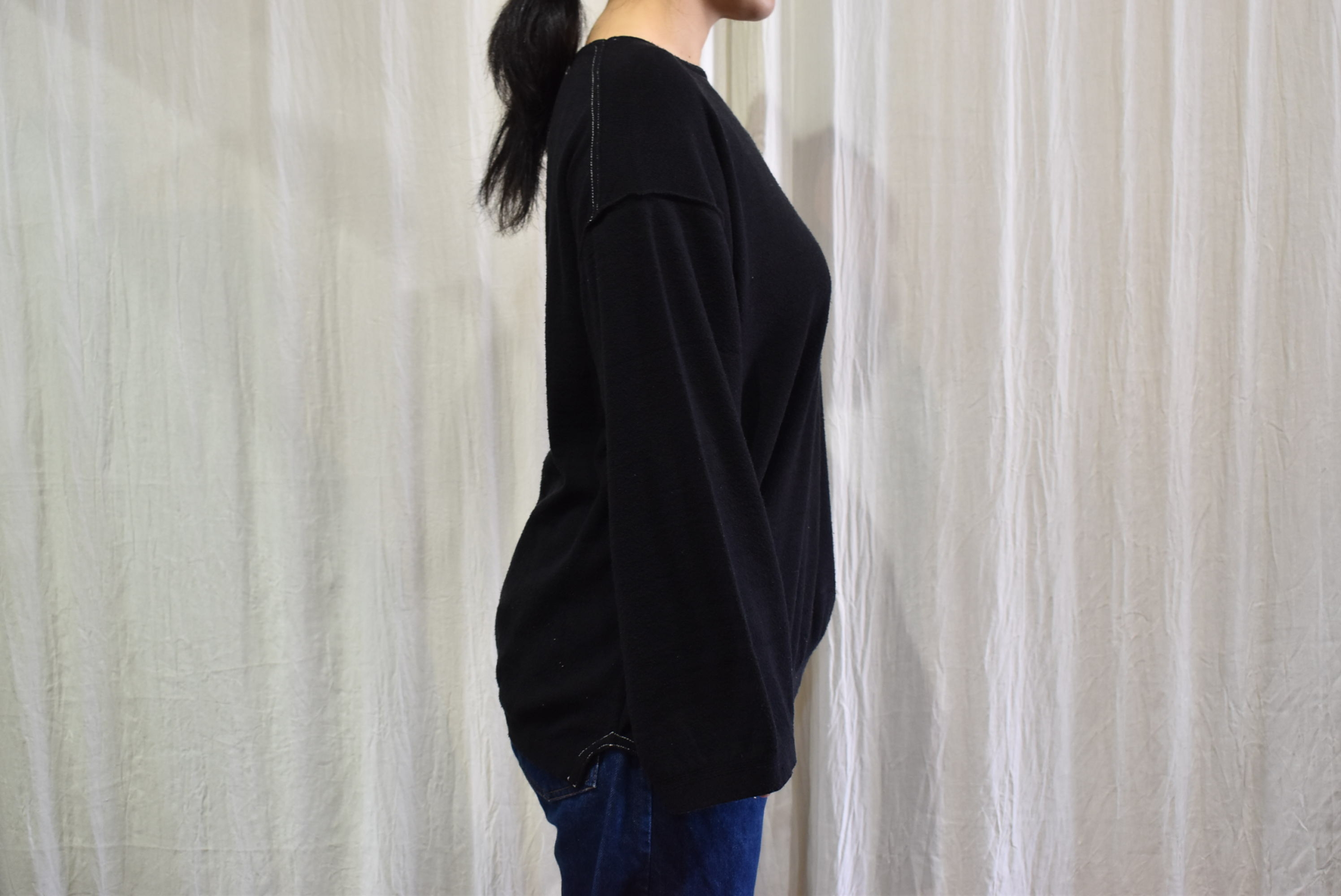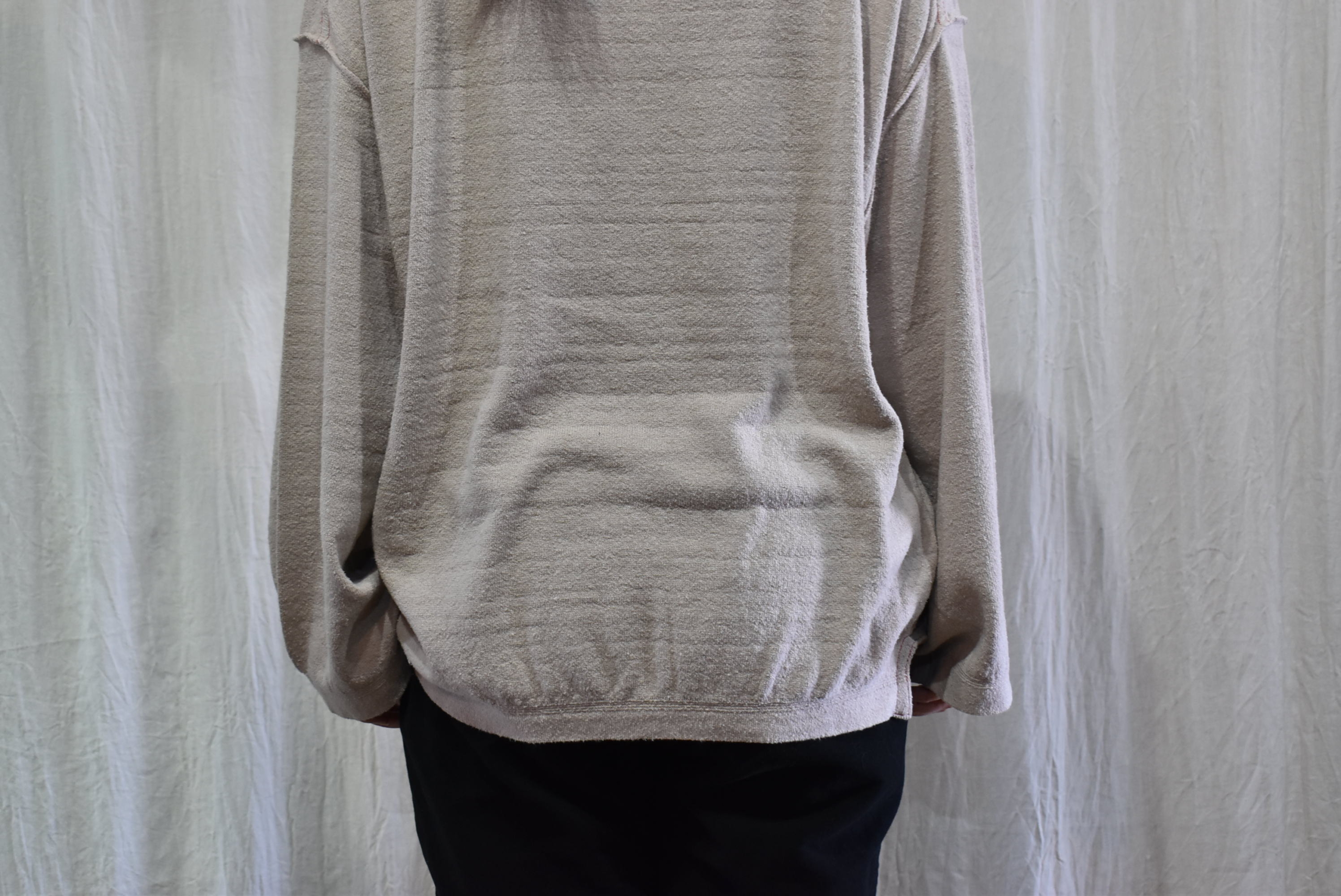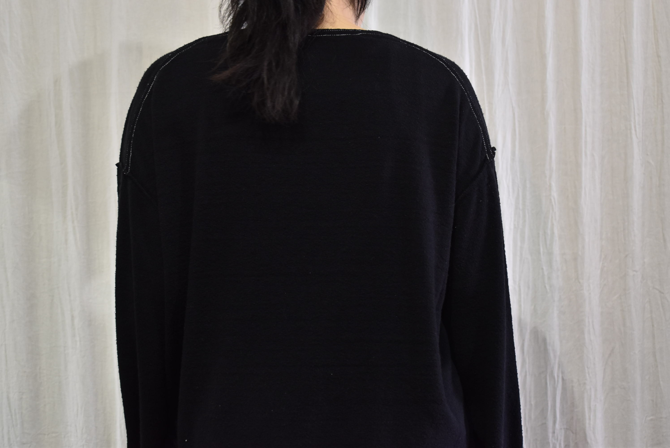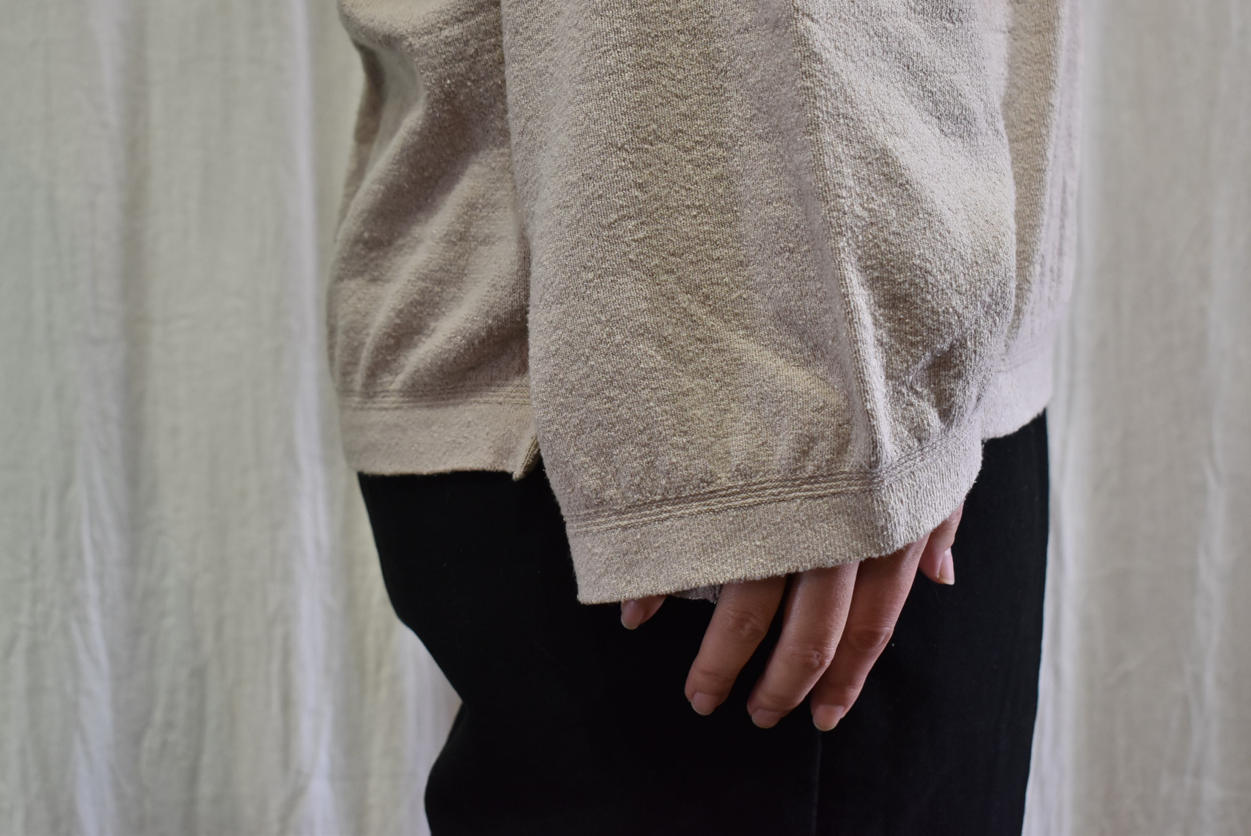 肩もしっかり目にドロップさせていますが、ニットならではの落ち感ととともに、柔らかで少しだけぽそぽそと節のある