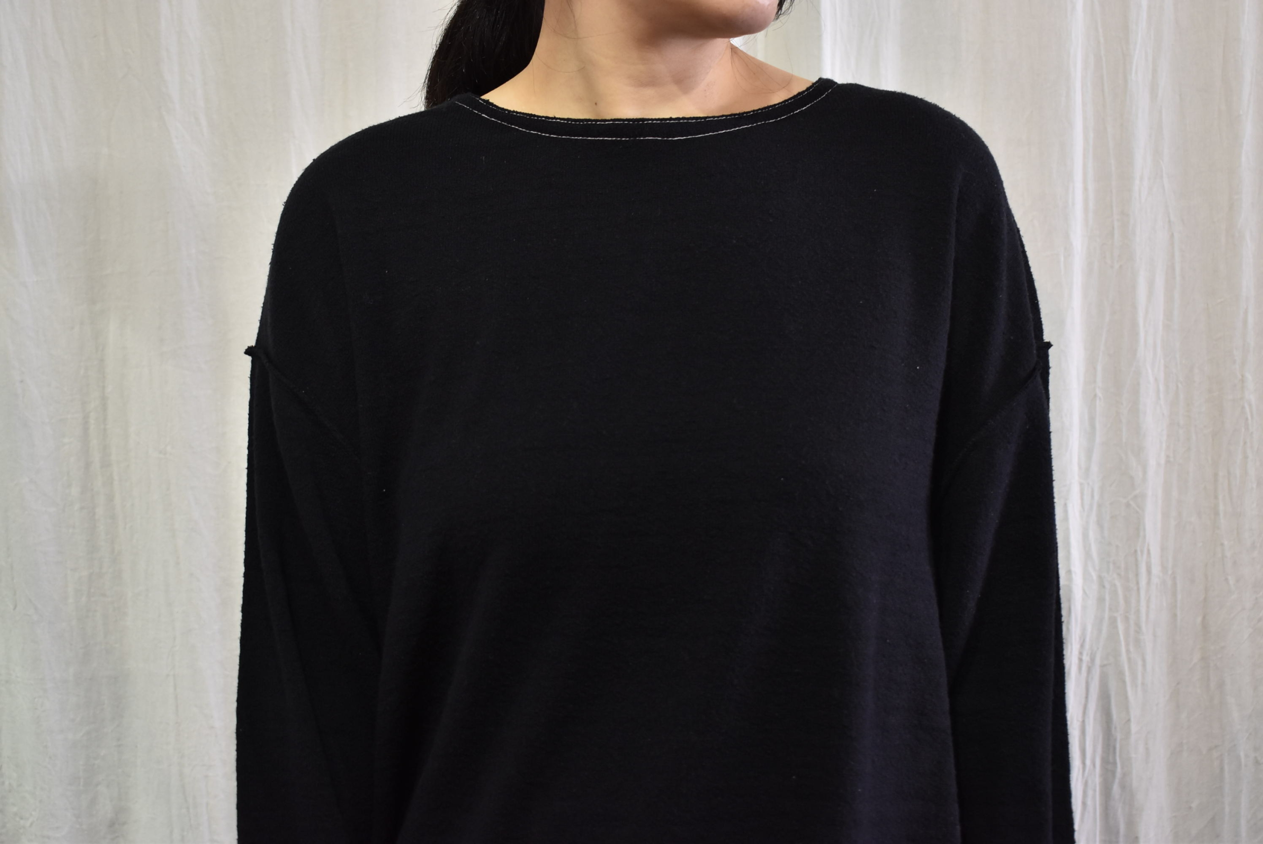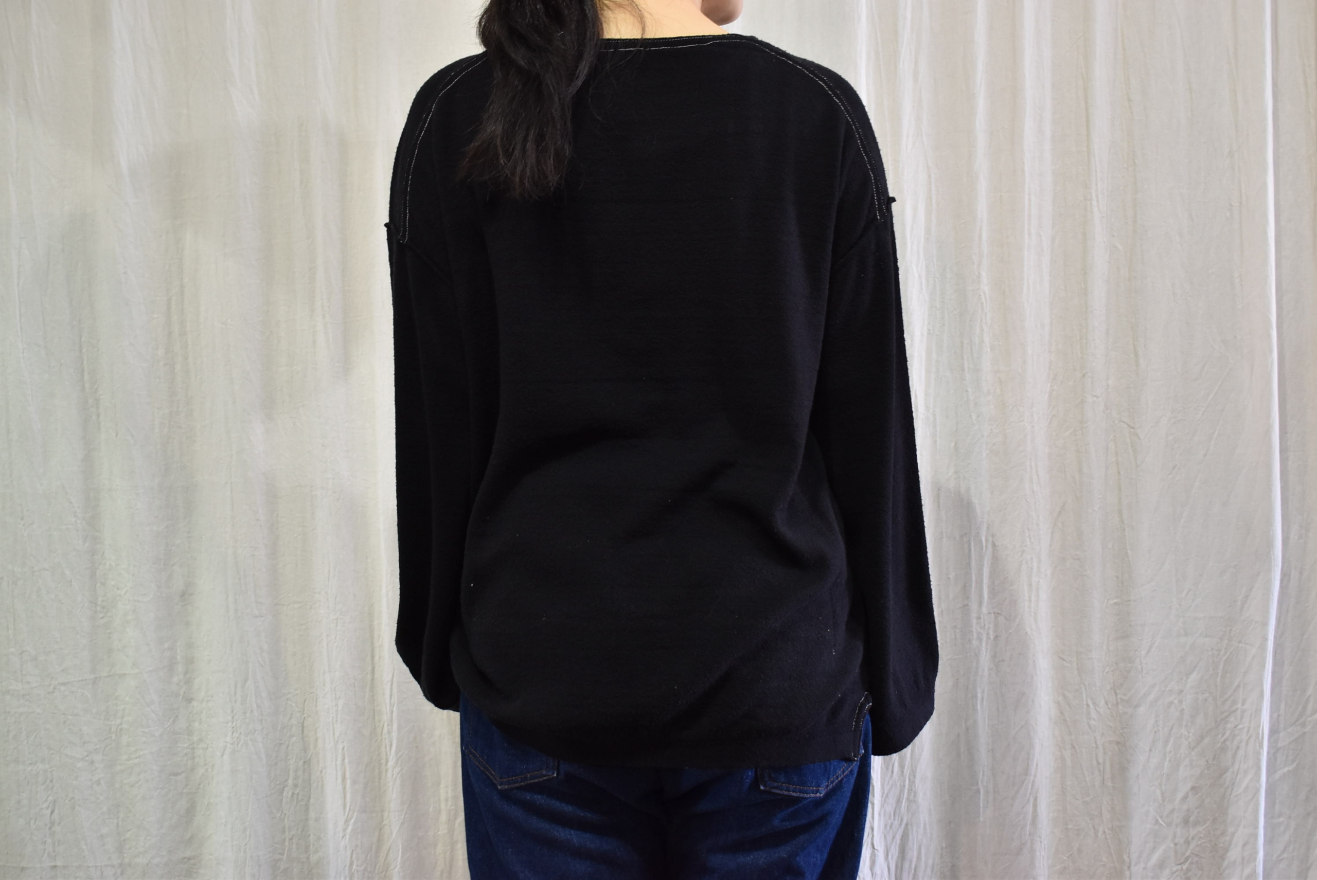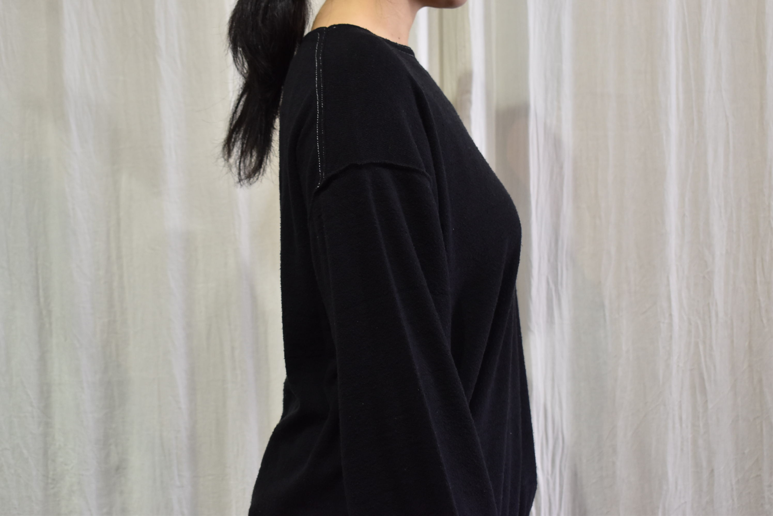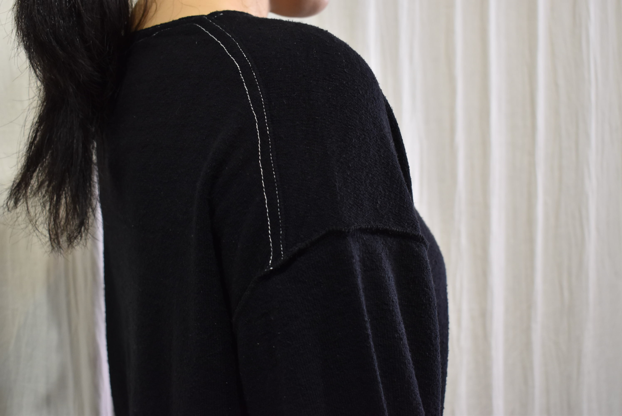 首の開きの塩梅も分かってらっしゃるという感じで、裾と袖のリブも可愛く仕上げています。バランス感覚が抜群。