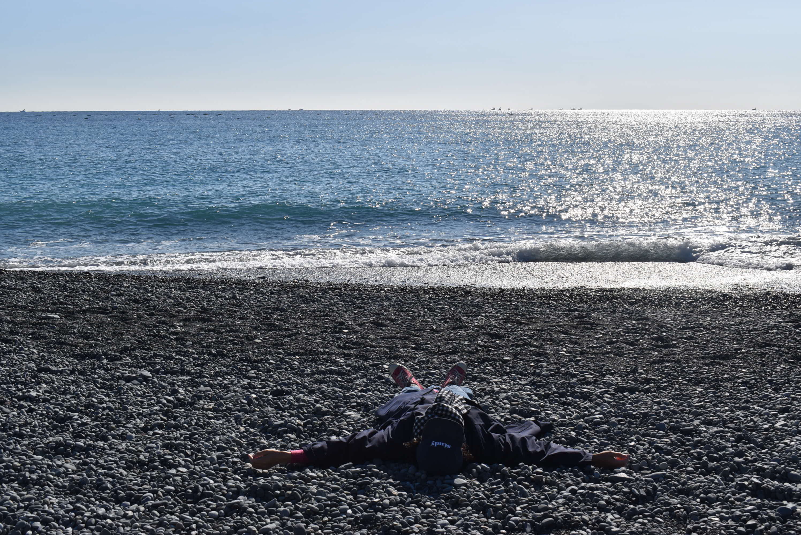 石ころの上に寝っ転がって太陽を身体いっぱい吸収。ビタミンD不足を解消!!