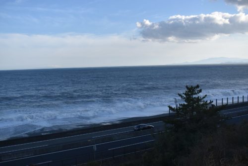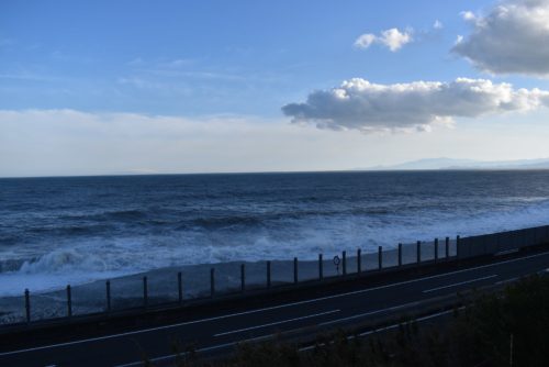 見たこともないくらいに高い波が、西湘バイパスのギリギリ手前まで迫っていた。