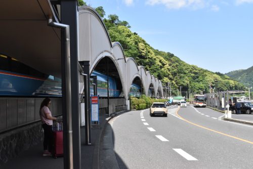 海に感動していると、幾つか分かれ道があって、それを通り過ぎると、あっという間に箱根湯本。